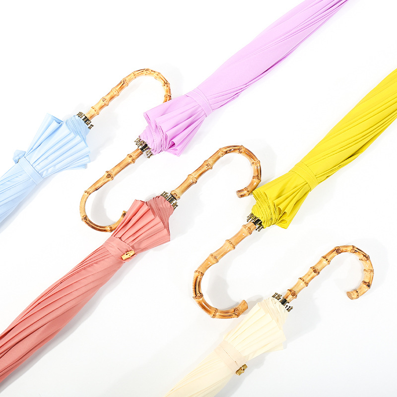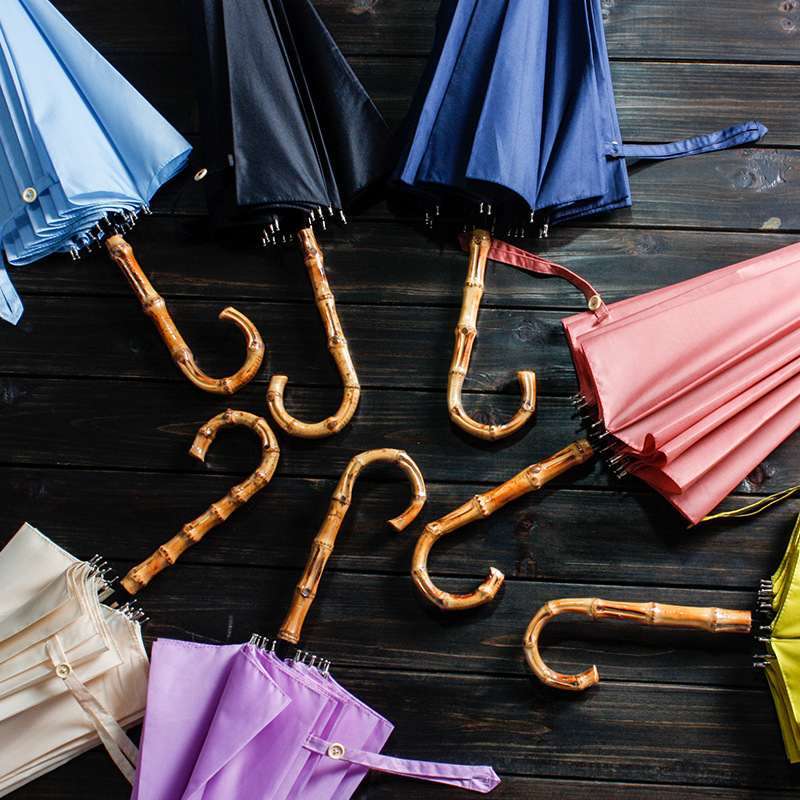 超大16骨竹节弯柄直杆伞纯色雨晴两用伞广告伞LOGO定制 实用的会议礼品
