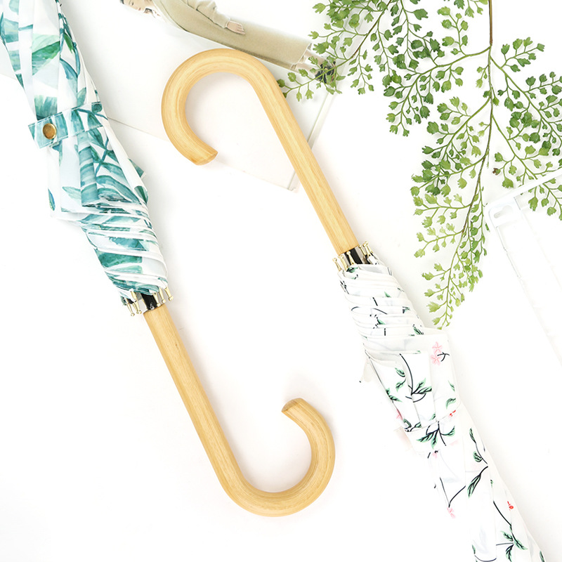 清新文艺木柄弯柄直杆伞雨晴两用伞户外遮阳 夏日礼品