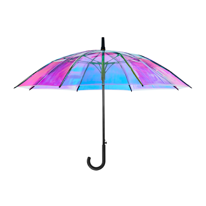 炫彩防风长伞INS渐变镭射虹膜透明彩虹伞自动长柄伞 适合公司活动的礼物