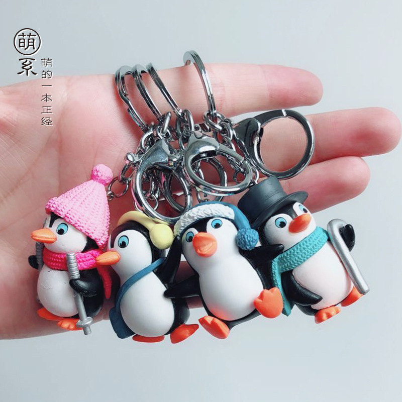 滑雪可爱企鹅钥匙扣 创意包包挂件 卡通钥匙扣公仔挂件
