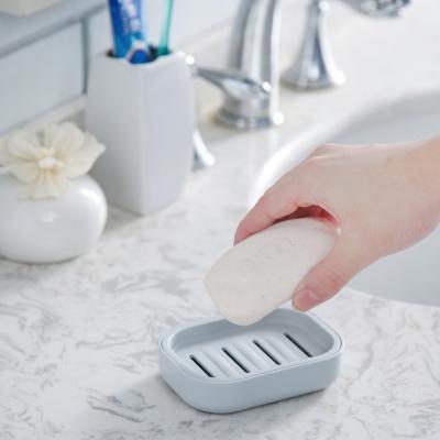 方形沥水双层香皂盒--灰蓝 现场小礼品