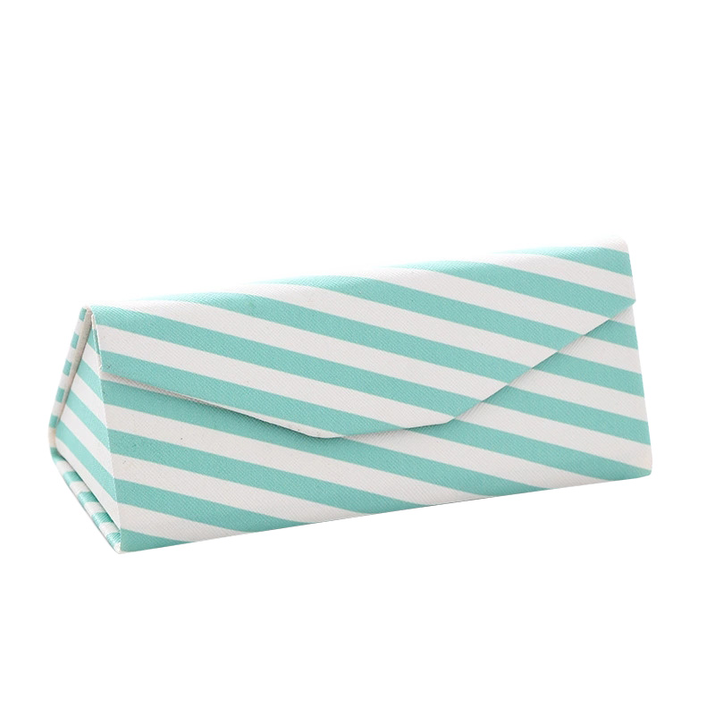 【绿白条纹】款 可折叠三角眼镜盒 便携式眼镜盒