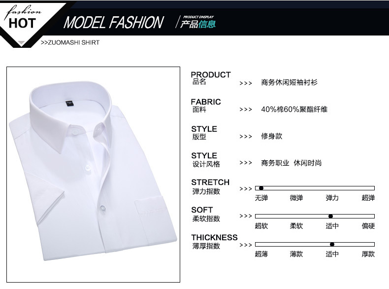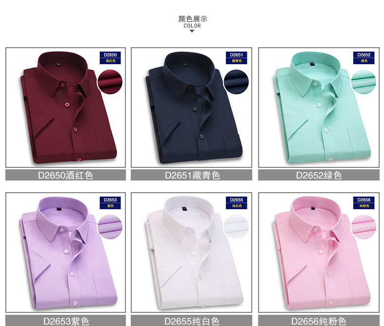 商品名称:【短袖纯色】夏季商务短袖纯色衬衫 修身版型舒适面料