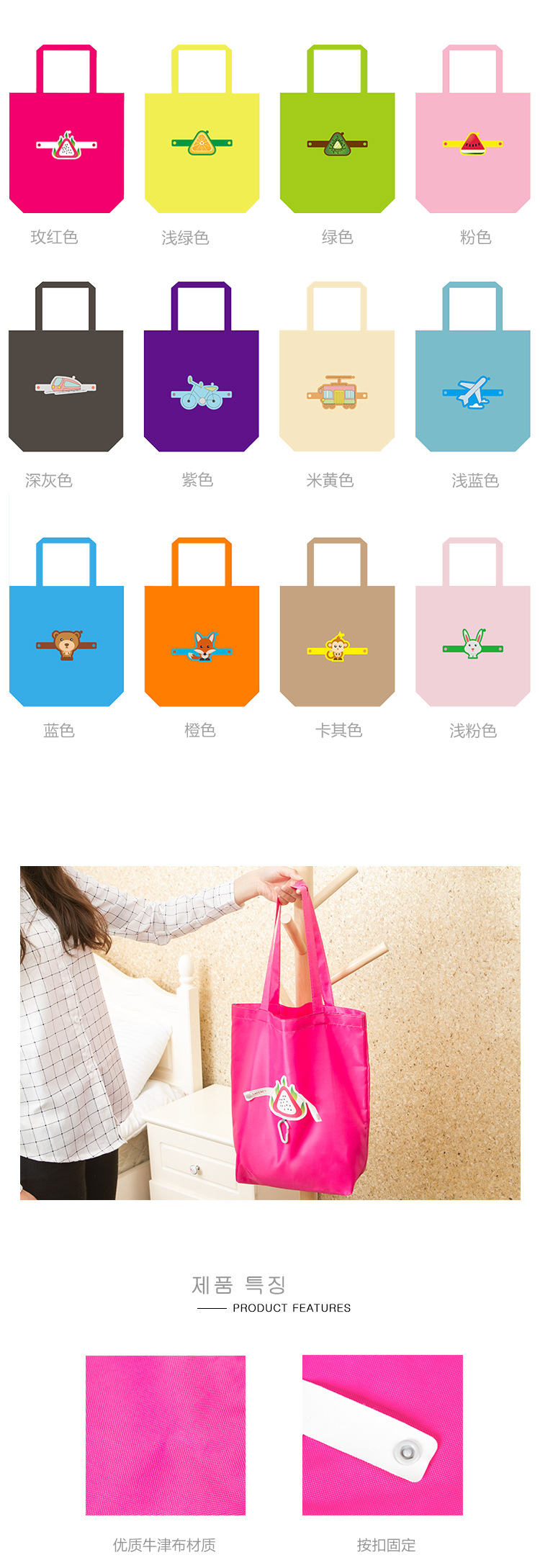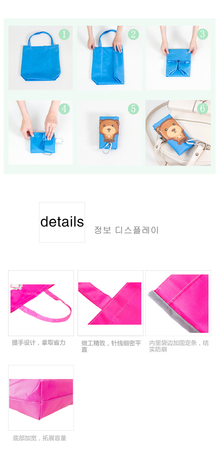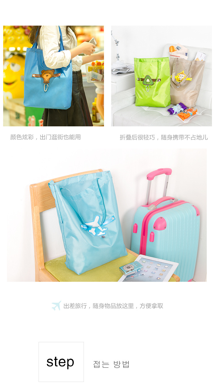 商品名称:小熊 创意带挂扣卡通多彩可折叠环保防水收纳袋 礼品定制 10元小礼品
