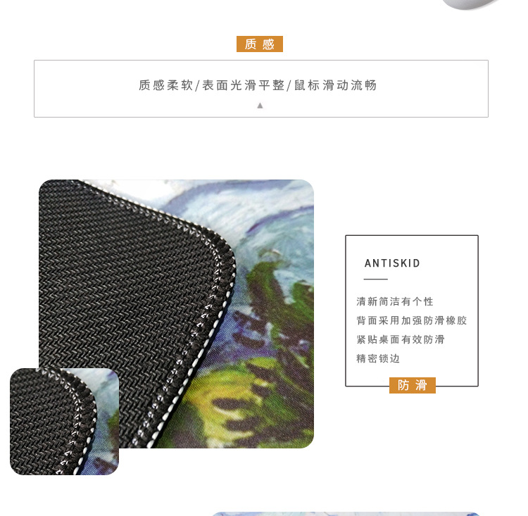 商品名称:【海边小船】精美设计梵高油画大号鼠标垫 有个性的艺术风格 精密锁边 文化活动 奖品