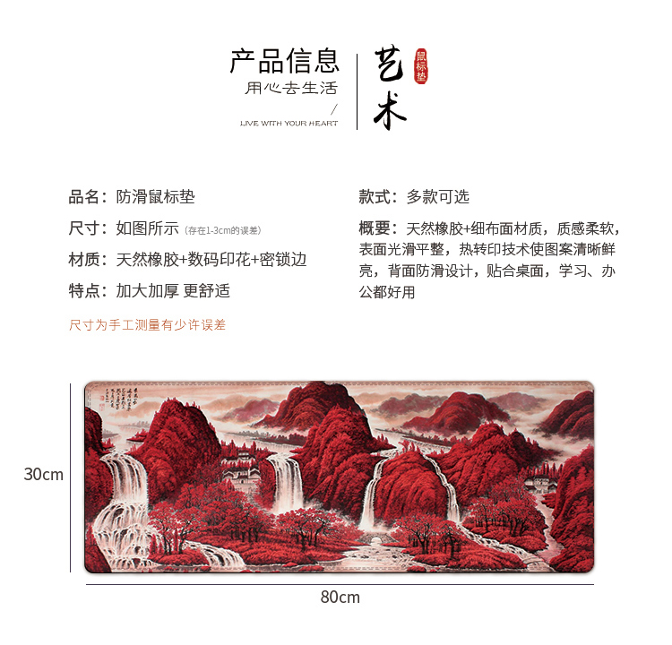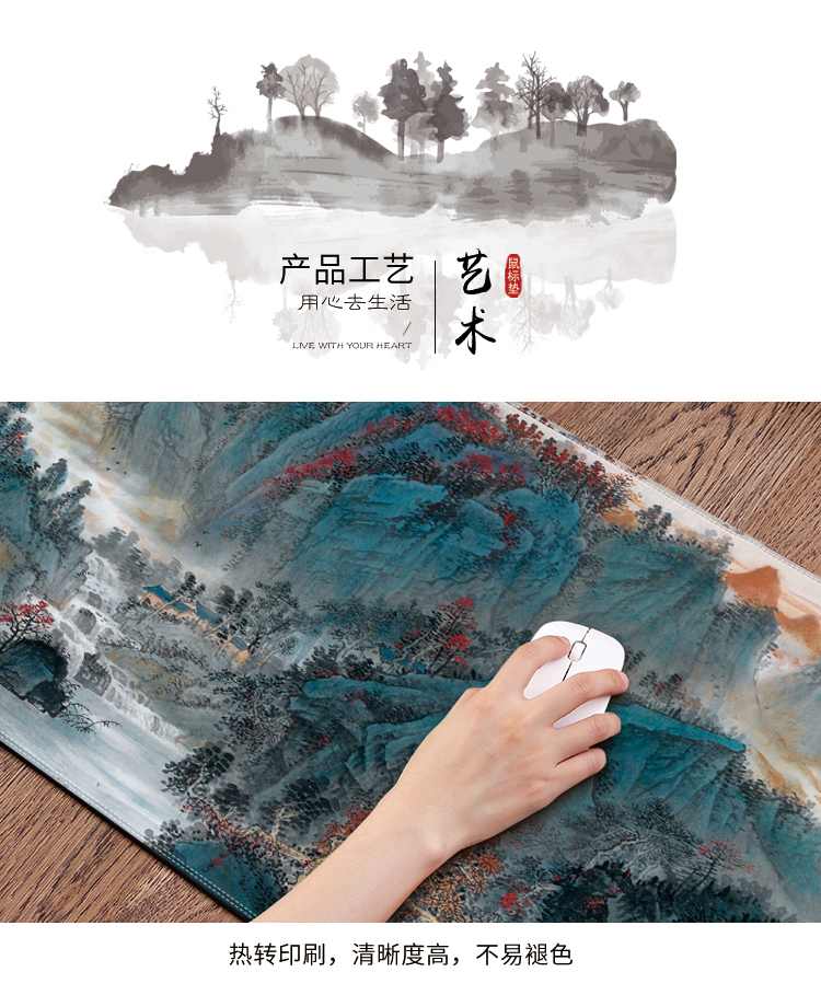 商品名称:【峡江船歌】办公桌面超大鼠标垫加厚背面防滑纹路 加密锁边 印刷清晰不掉色 文化礼品一般有哪些