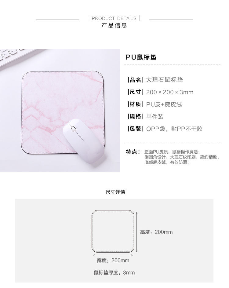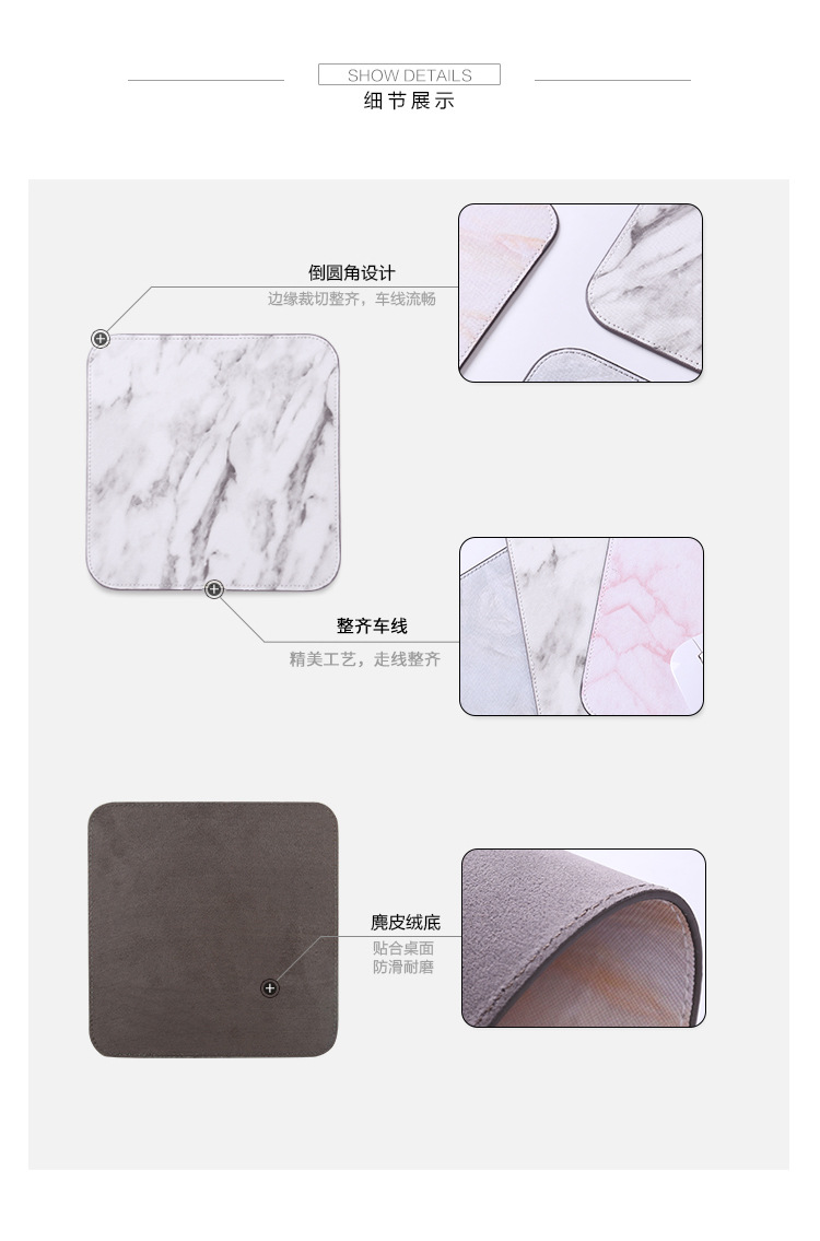 商品名称:ins风大理石鼠标垫 PU麂皮绒防滑鼠标垫 桌垫 办公家居桌面用品
