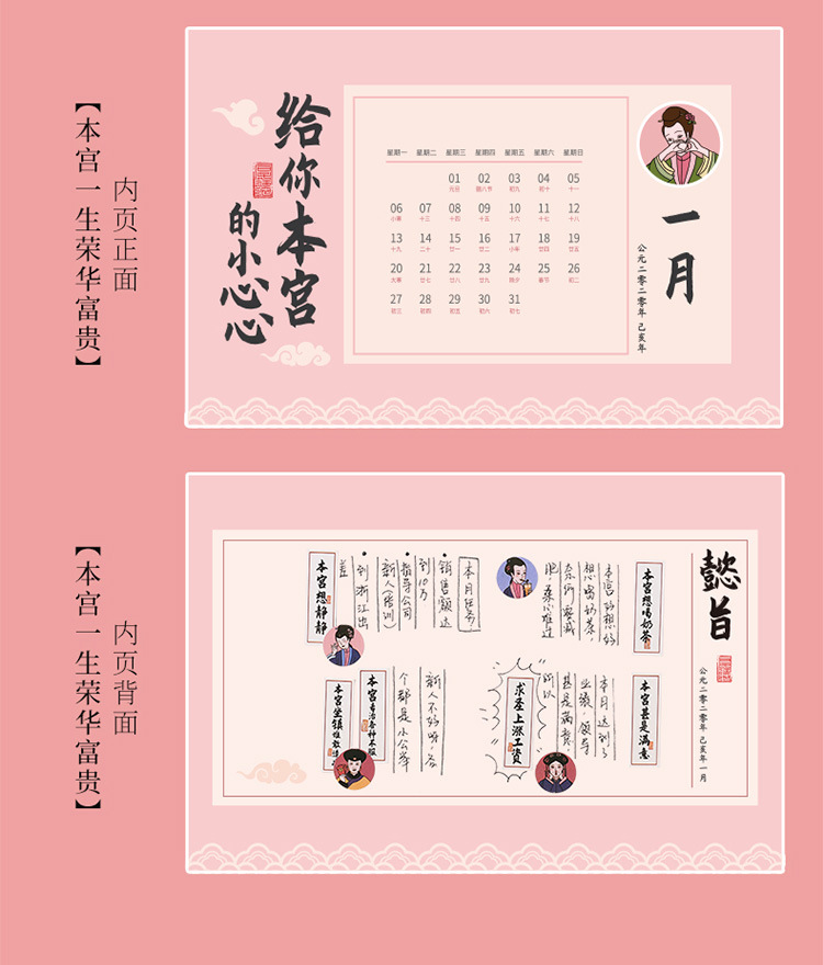 商品名称:2020年中国风宫廷日历印刷清晰 年会小奖品推荐