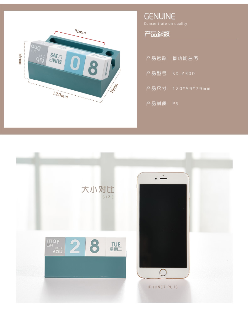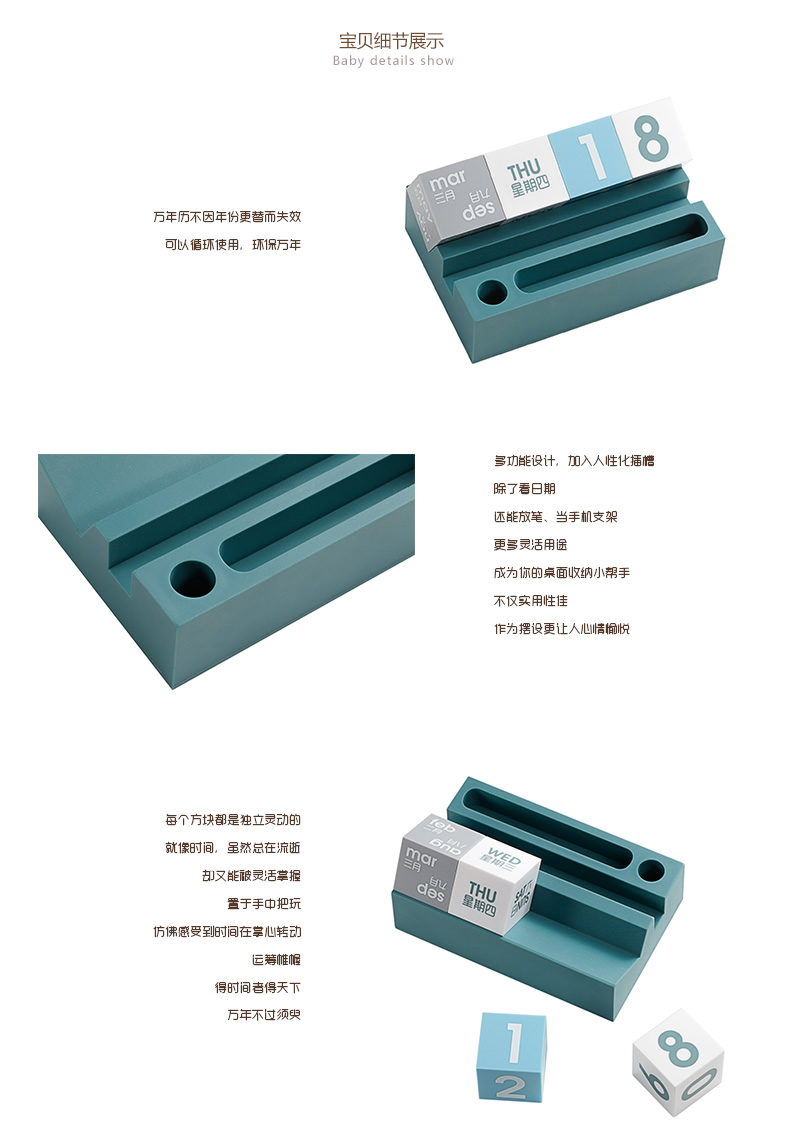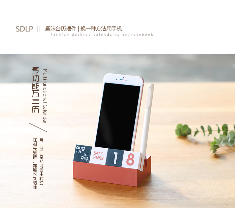 商品名称:【时代良品】台历多功能万年历 趣味台历摆件 手机支架 笔插手机座
