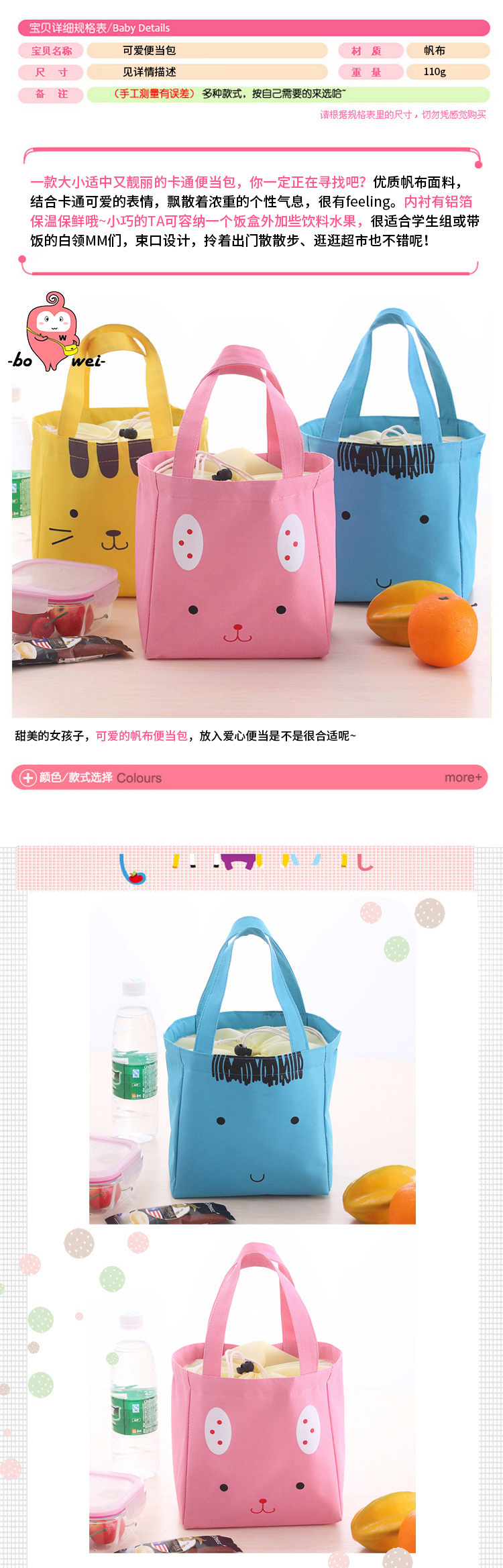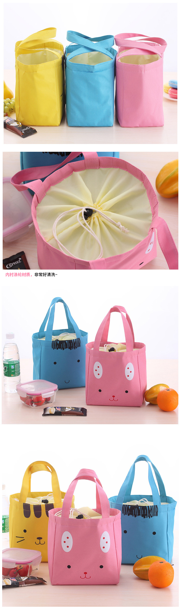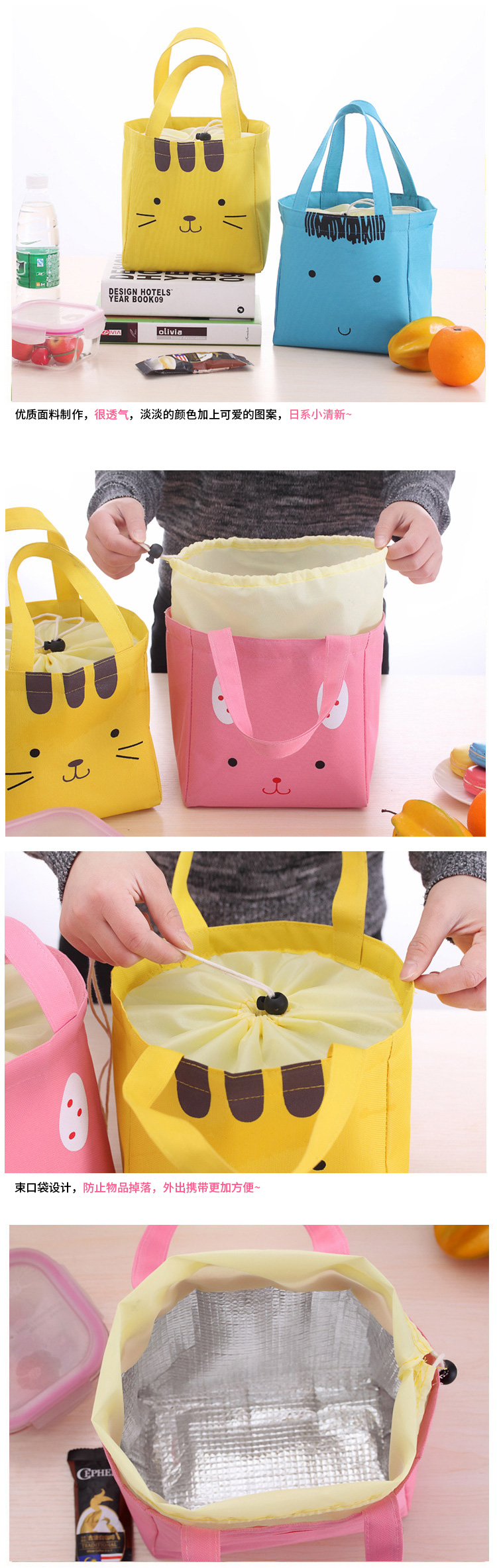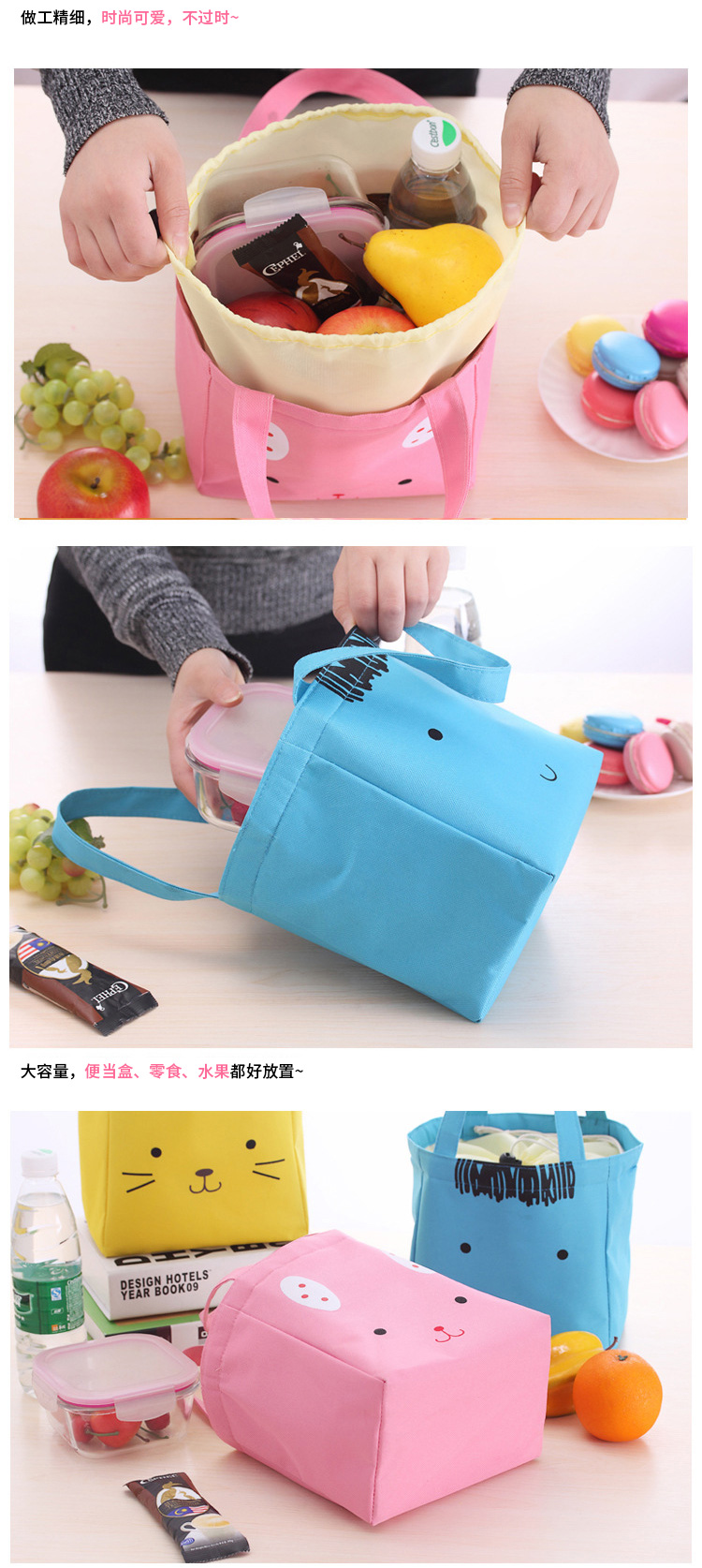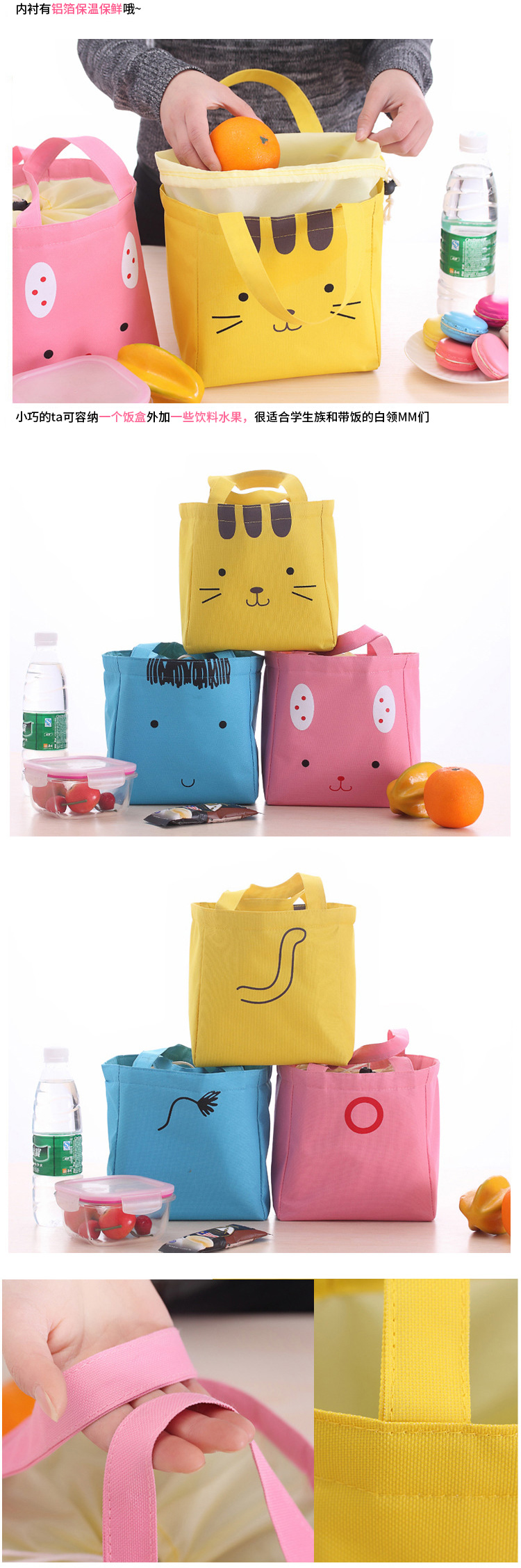 商品名称:卡通手提保温便当包 饭盒收纳袋--粉色