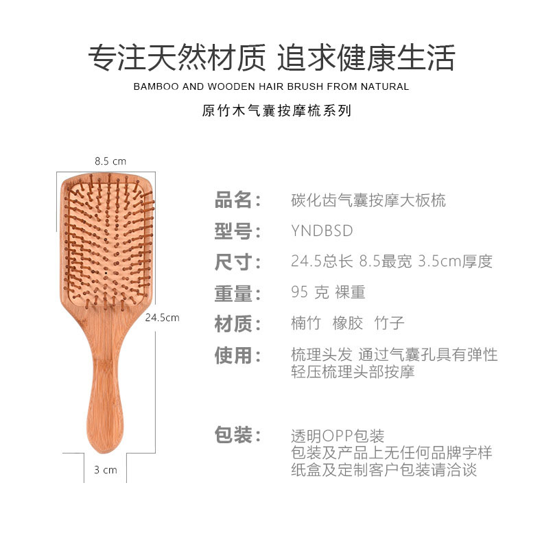 商品名称:碳化齿楠竹原木气囊按摩大板梳 梳子 木梳 方便邮寄的礼品