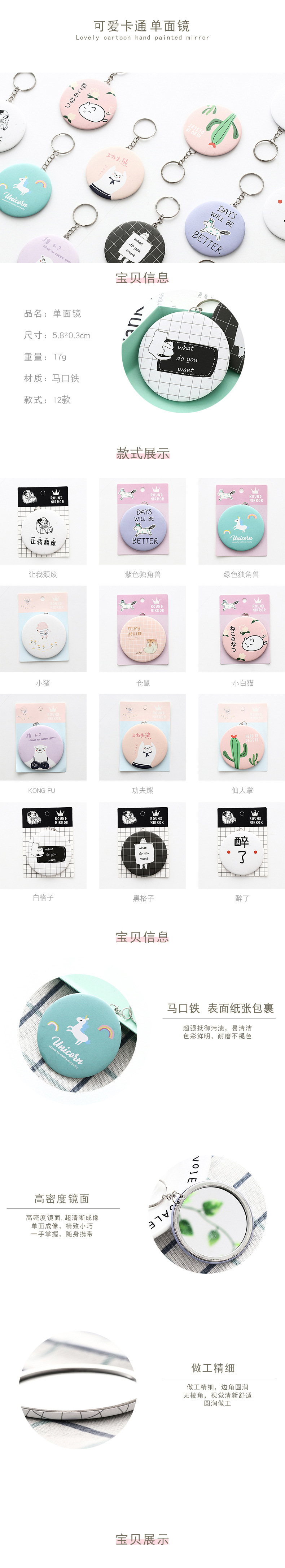 商品名称:带钥匙扣创意可爱化妆镜 随身小镜子 镜面平整透亮 关爱女性小礼品