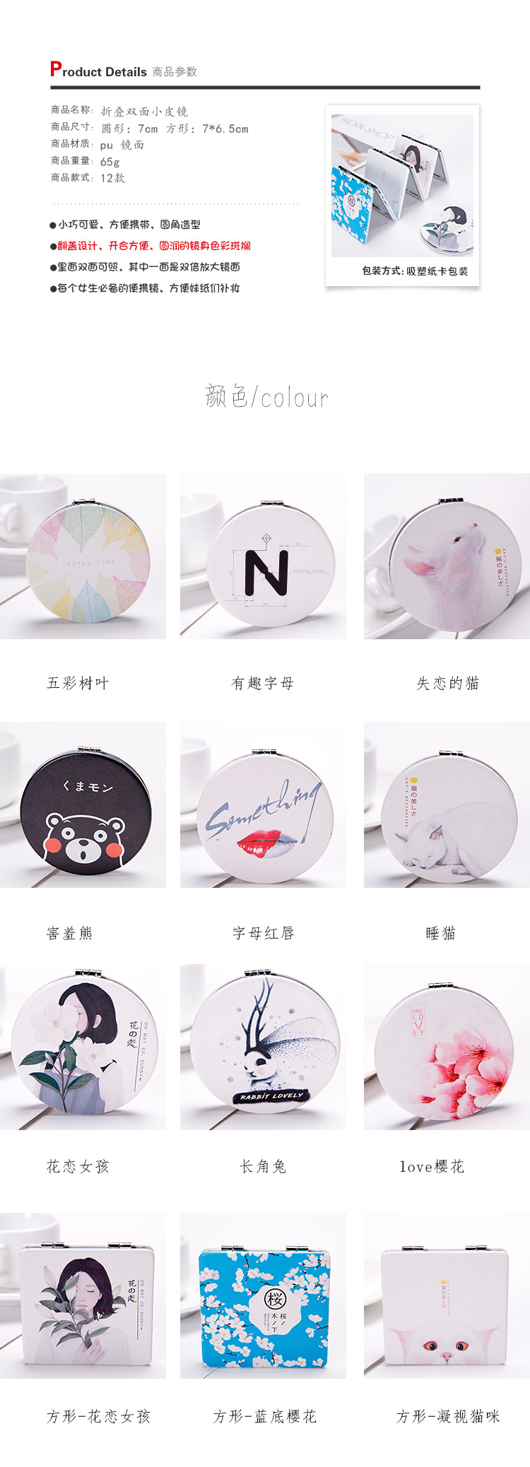 商品名称:气质折叠小皮镜双面化妆镜 宣传小礼品有哪些