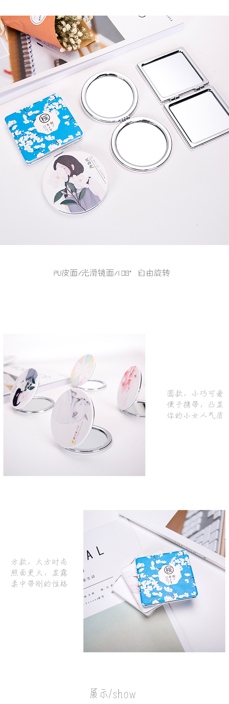 气质折叠小皮镜双面化妆镜 宣传小礼品有哪些