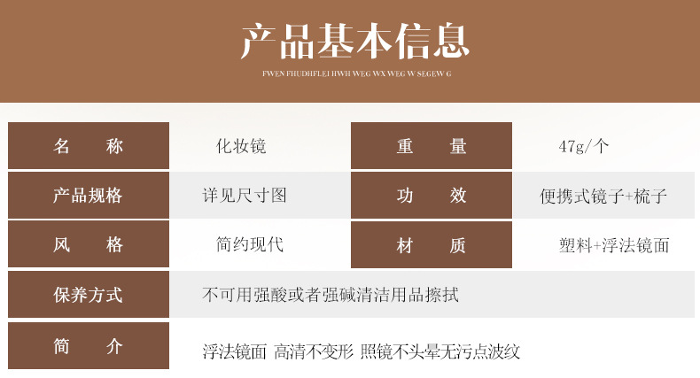 商品名称:冰裂纹化妆镜+梳子套装 促销赠品选择