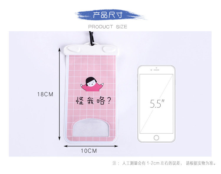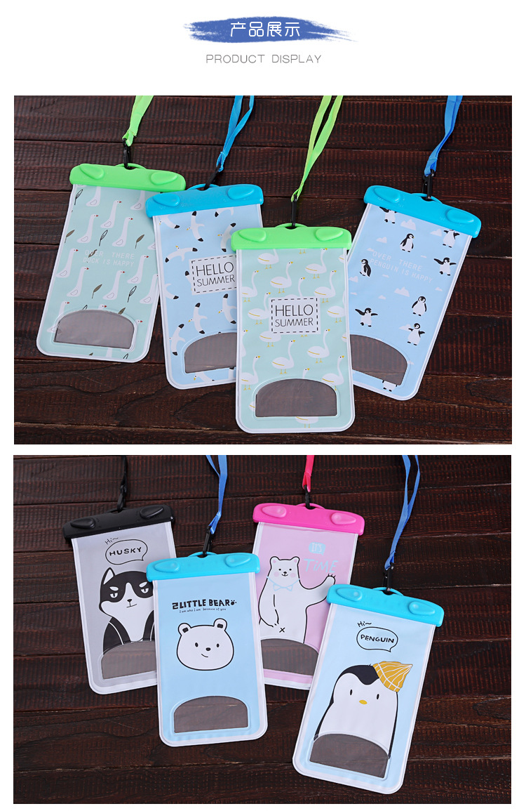 商品名称:可爱小清新游泳透明防水手机袋 触屏挂脖海边潜水套水下拍照通用