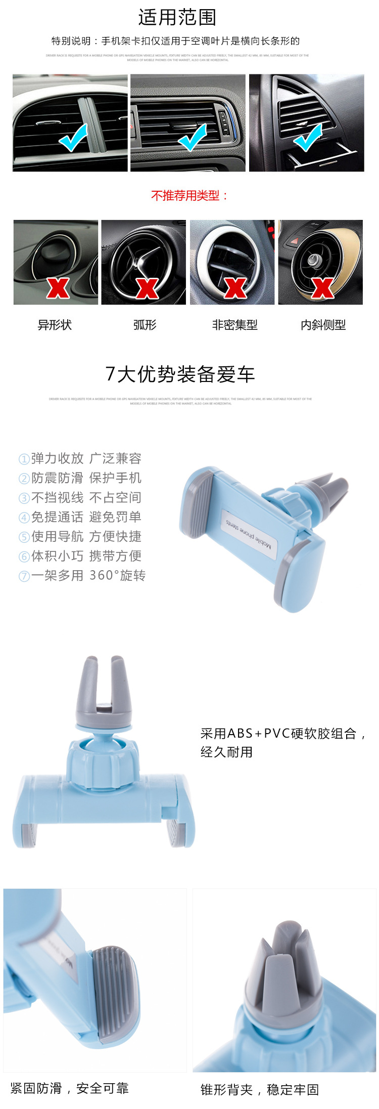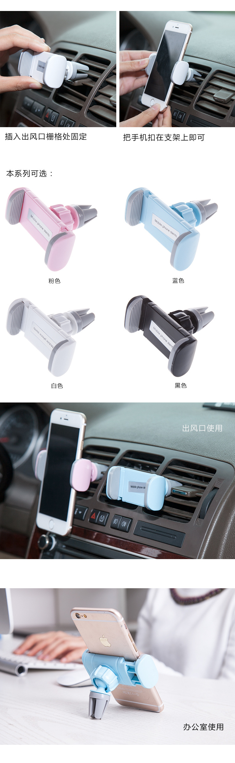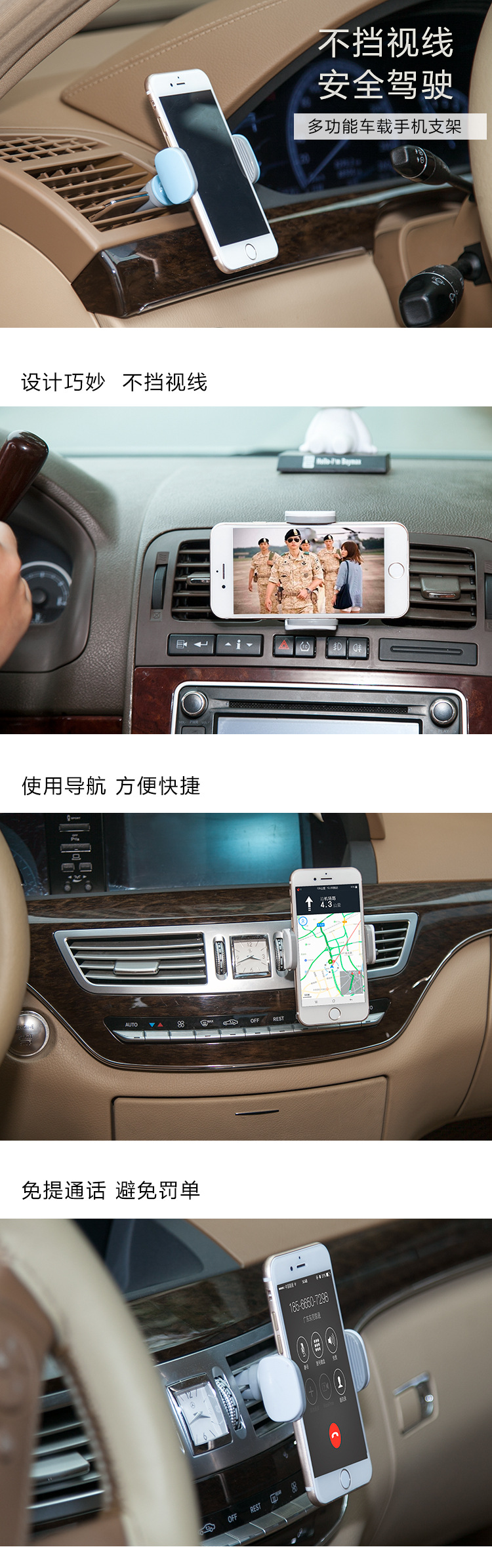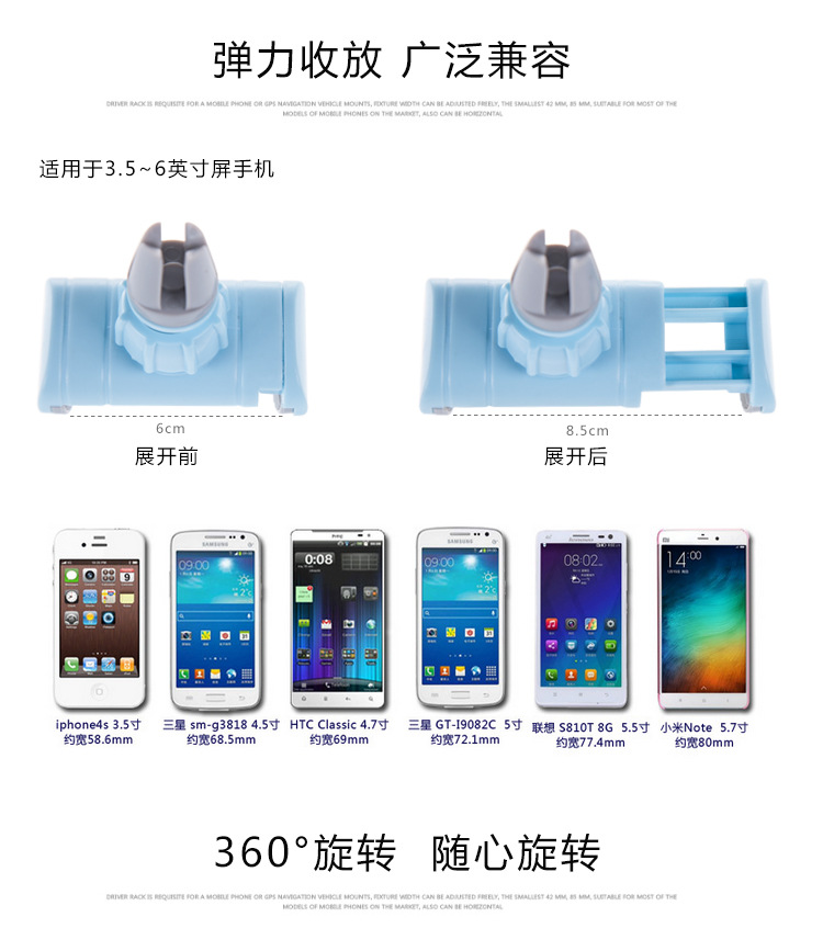 商品名称:多功能车载手机支架 360°可旋转出风口吸盘式手机座 车载小礼品