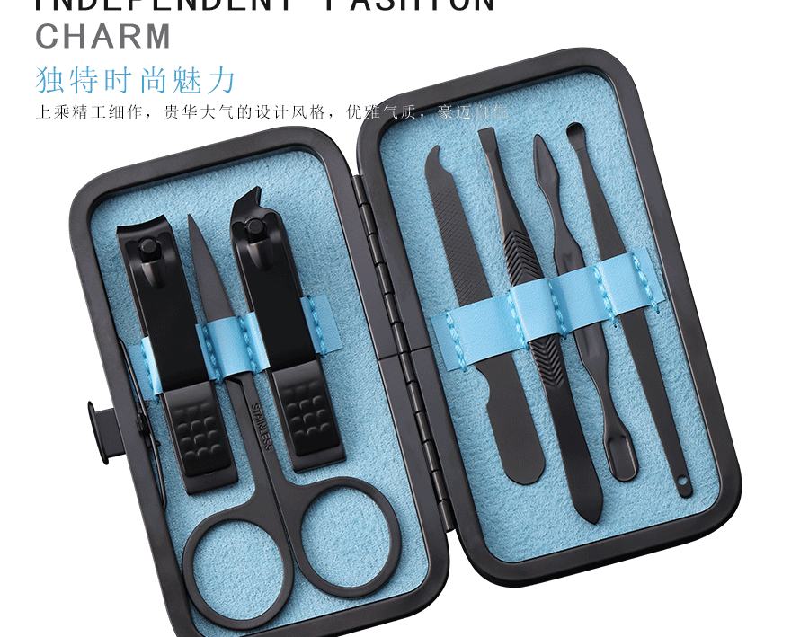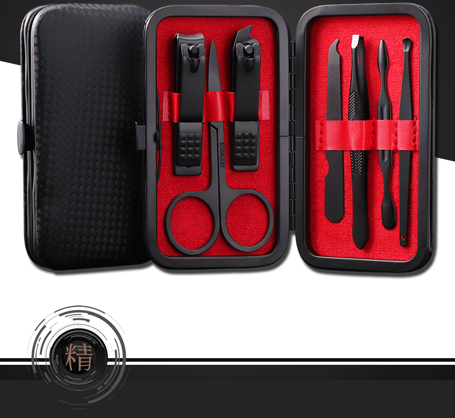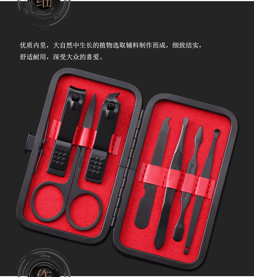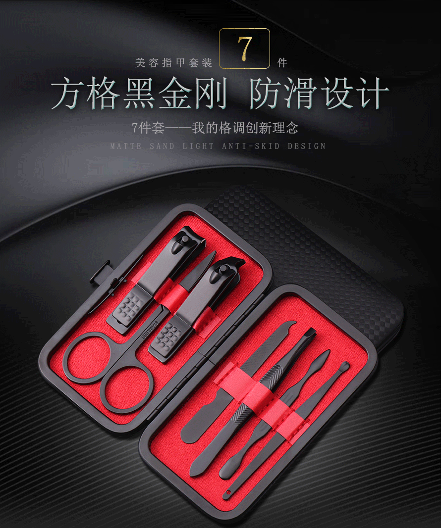 金刚亮黑色指甲钳7件套 刃口热处理 防滑设计舒适耐用 汽车赠送小礼品