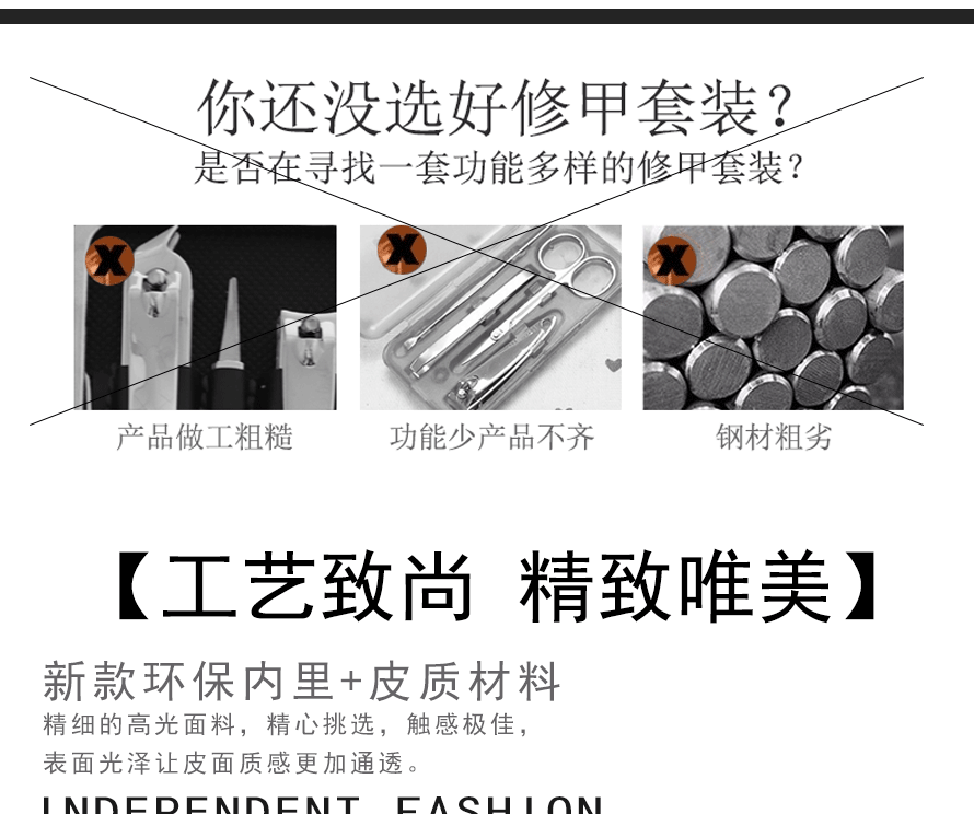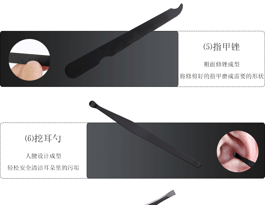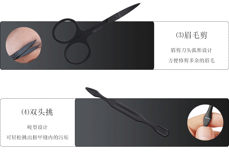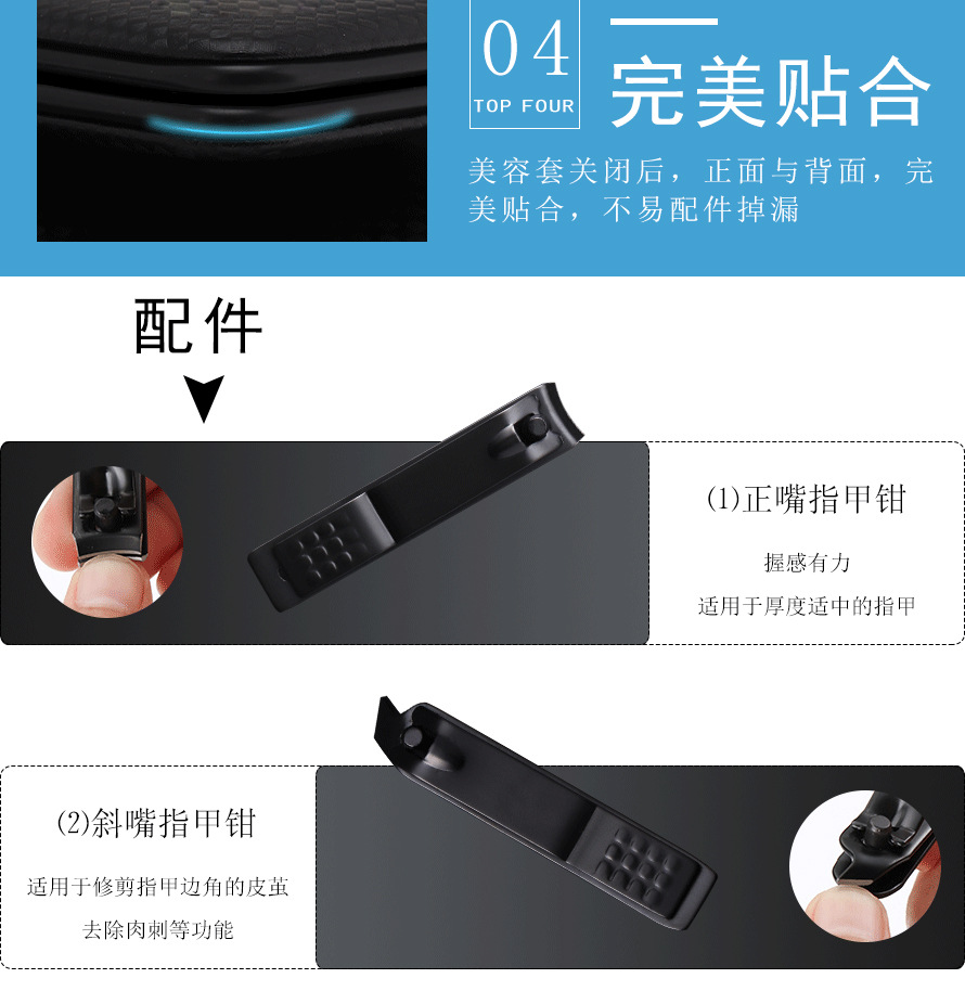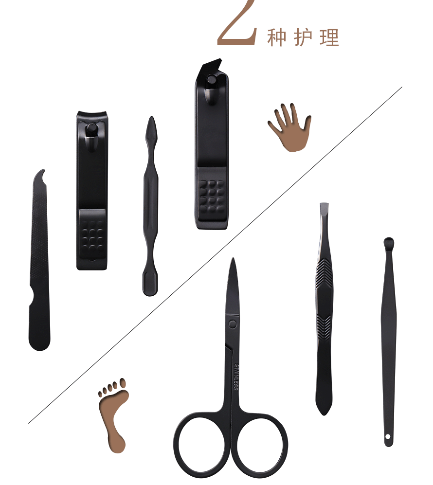 金刚亮黑色指甲钳7件套 刃口热处理 防滑设计舒适耐用 汽车赠送小礼品