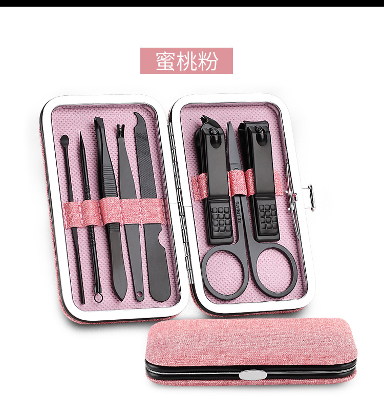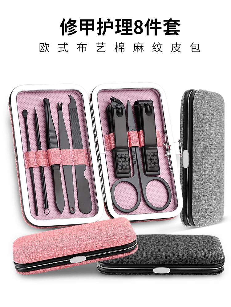 布艺棉麻纹布包8件套 修甲护理指甲钳套装 精美创意礼品