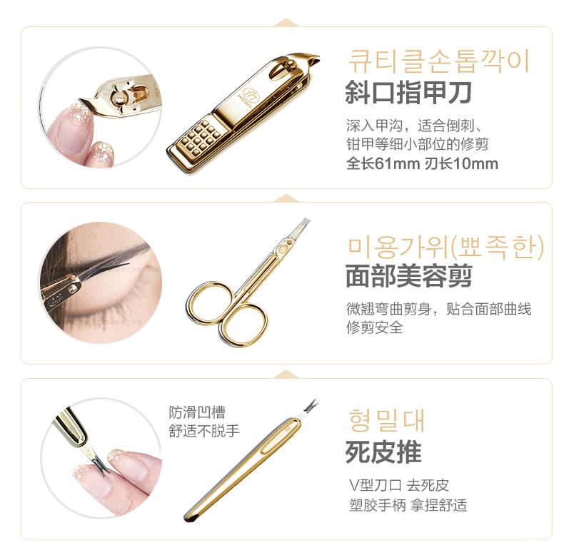商品名称:韩国777 8件套韩国进口品牌指甲刀套装 14K镀金表层 耐用10年 给高端客户送什么礼品