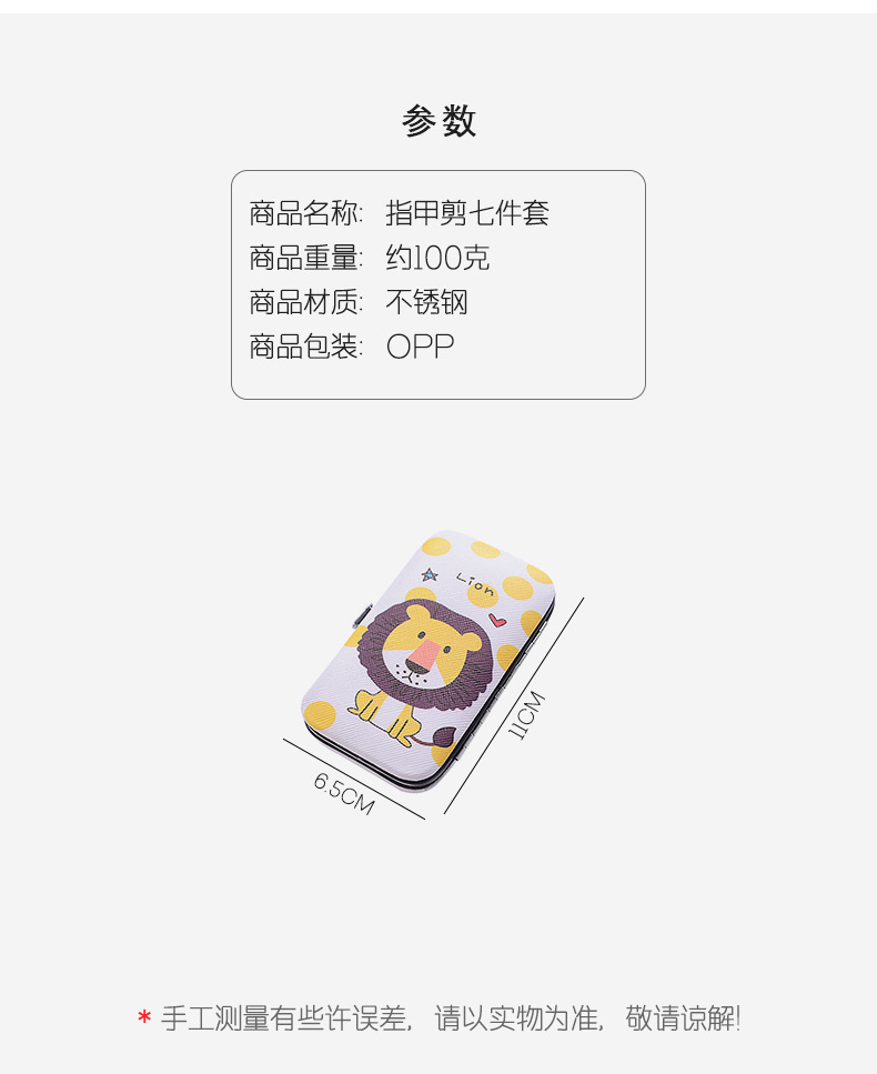 商品名称:【狮子】不锈钢护甲套装七件套 修甲套装