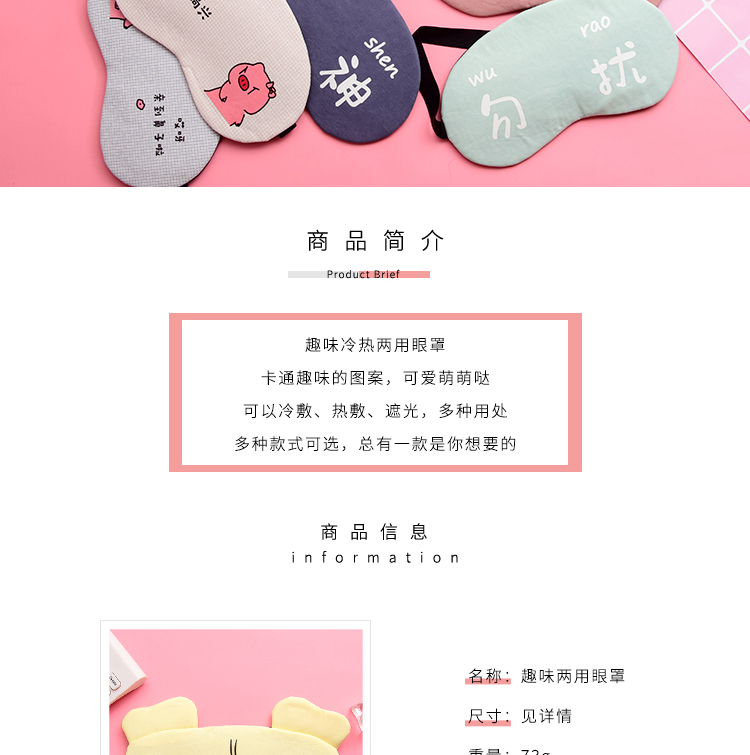 商品名称:趣味冷热两用眼罩 多种款式文字图案 松紧袋带设计 提问活动适合选什么礼品