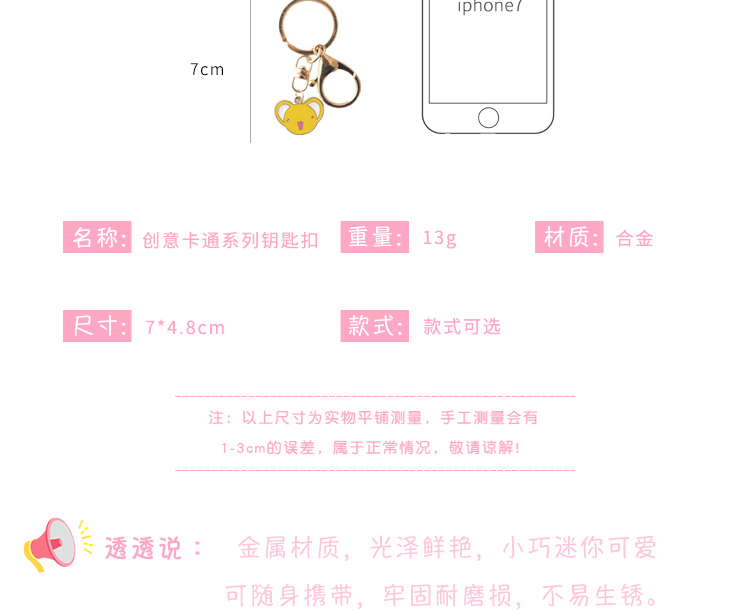 商品名称:美少女精致钥匙扣 金属材质耐磨耐摔可当挂件 使用方便 便宜的小礼品