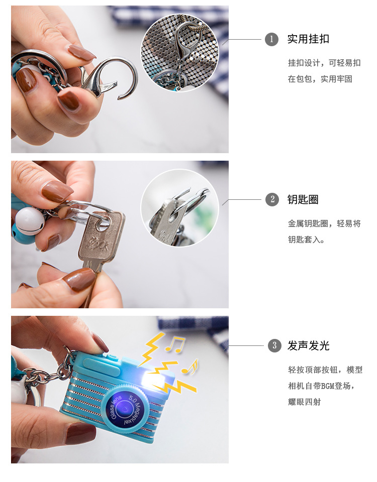 商品名称:童趣相机钥匙扣挂件会发光发声 自带BGM登场 展会创意小礼品