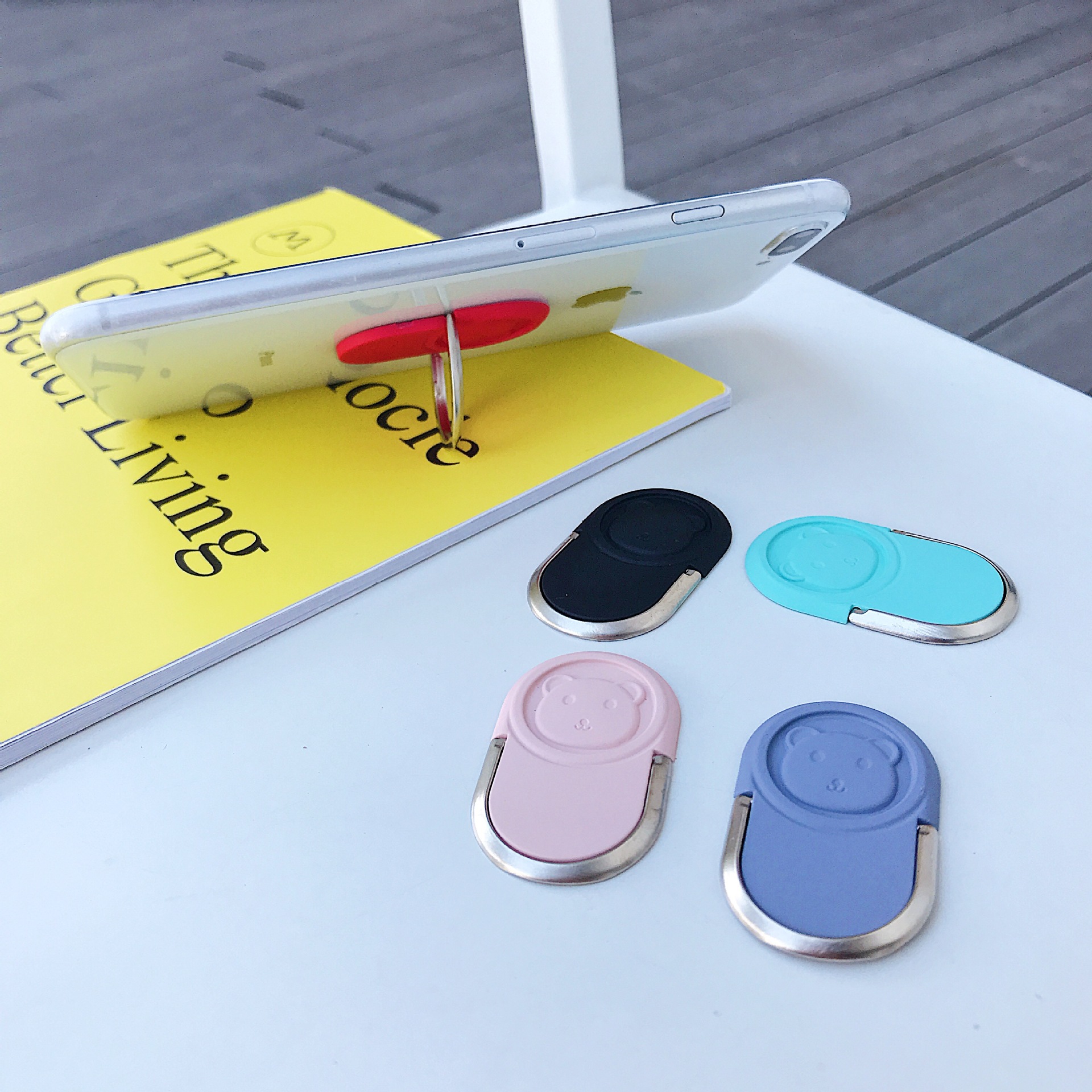 卡通熊猫头超薄指环扣手机支架 节日小礼品