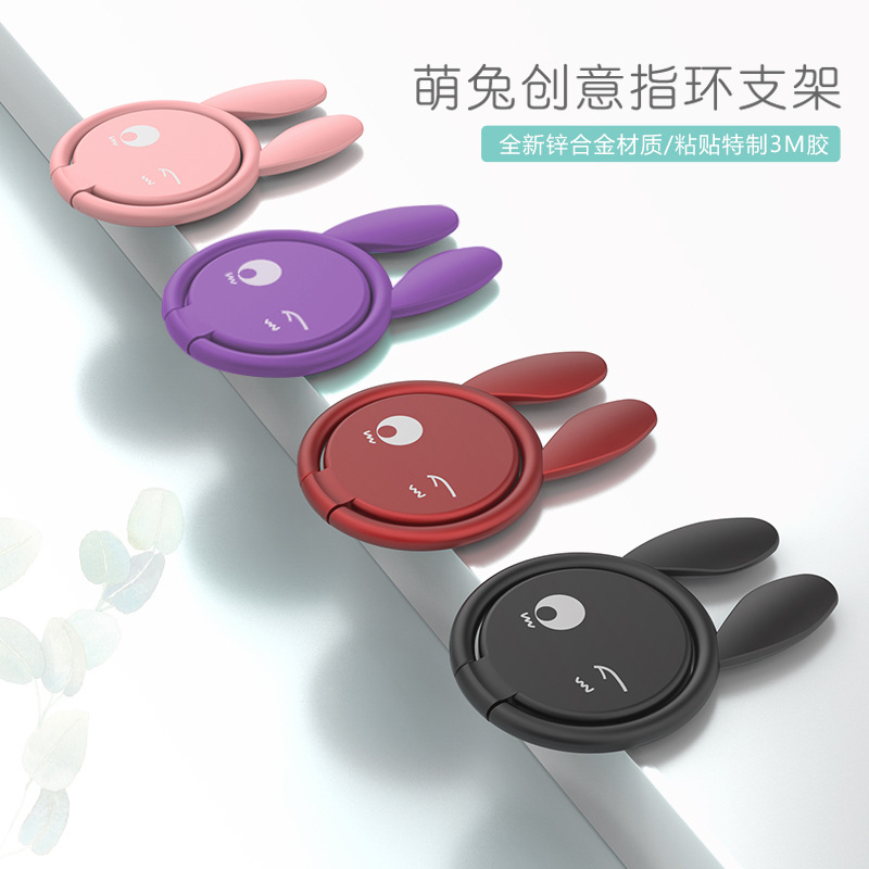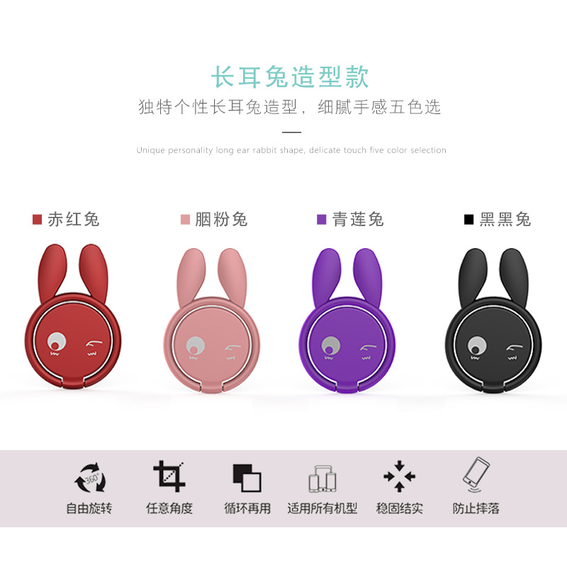 独特个性长耳兔造型锌合金手机指环扣 自由旋转手机支架 什么礼品小而实用