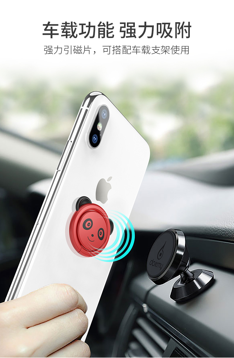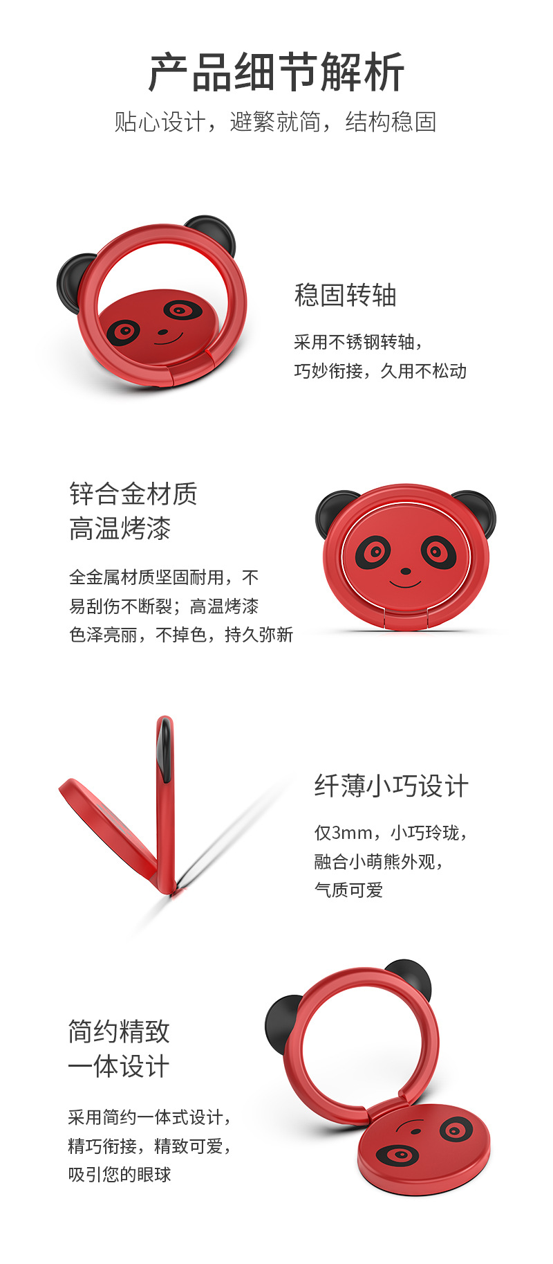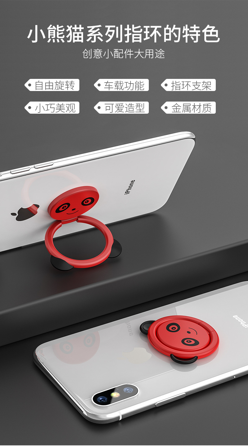 商品名称:【熊猫系列】金属手机指环扣手机支架 车载功能强力吸附 更薄更轻更美观 创意礼品伴手礼