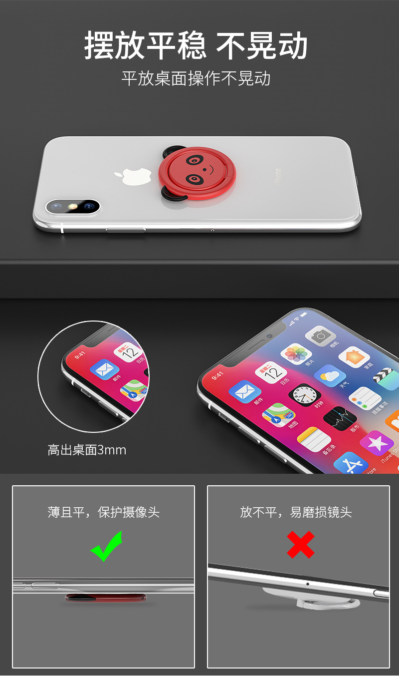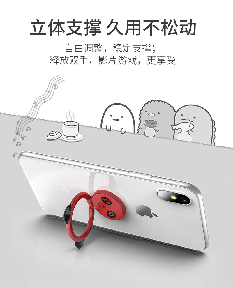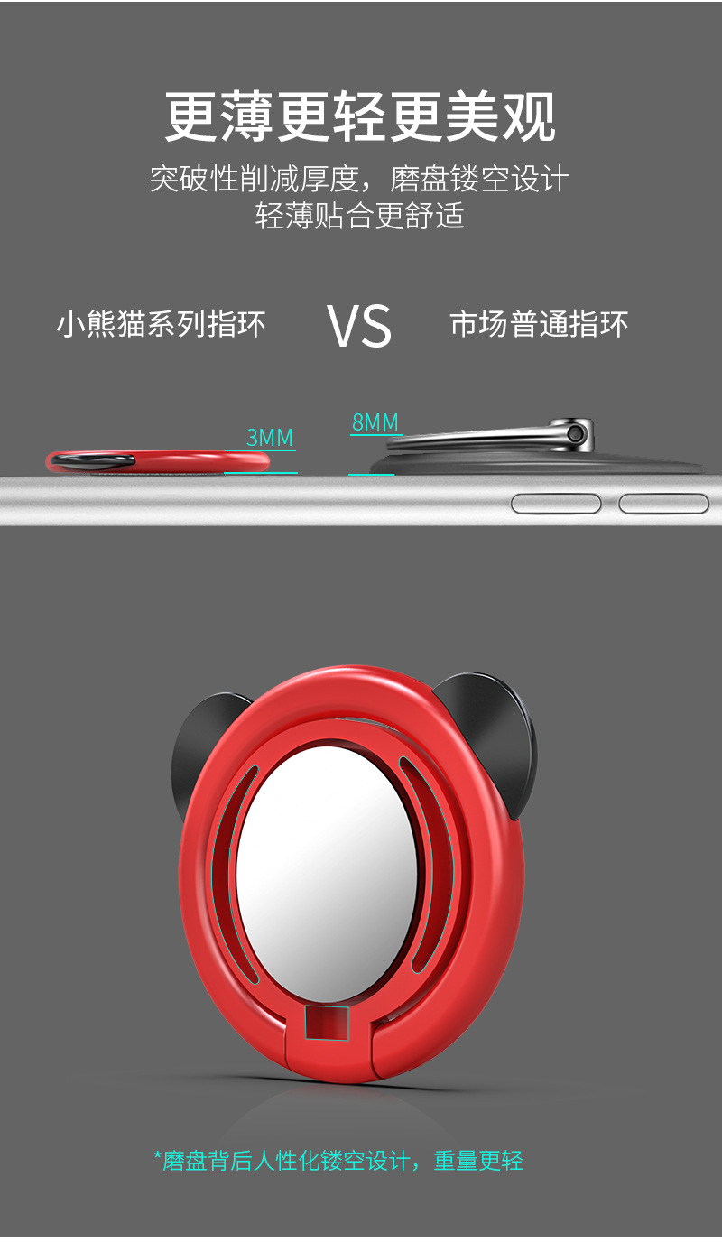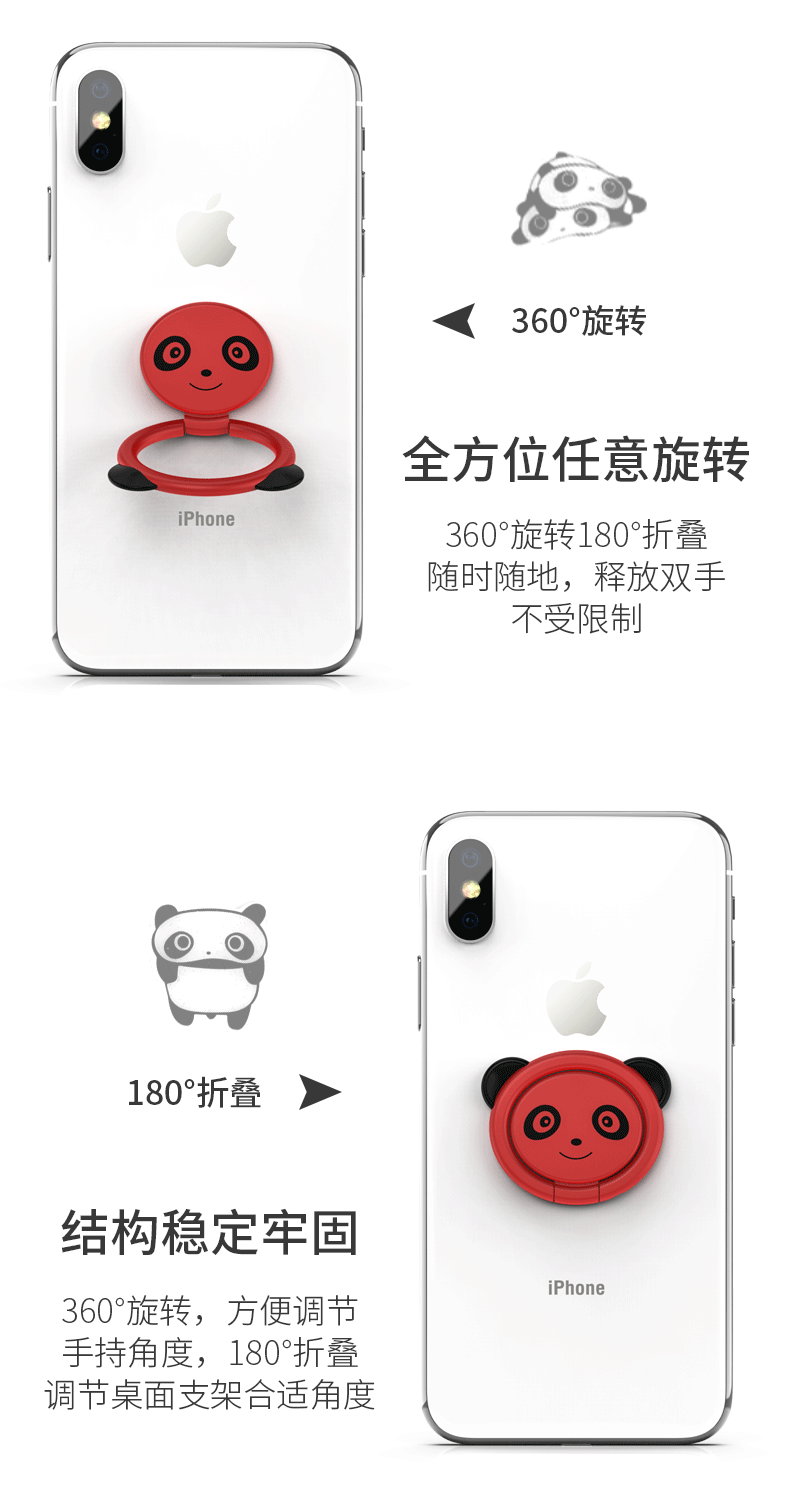 商品名称:【熊猫系列】金属手机指环扣手机支架 车载功能强力吸附 更薄更轻更美观 创意礼品伴手礼