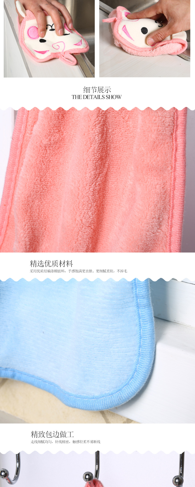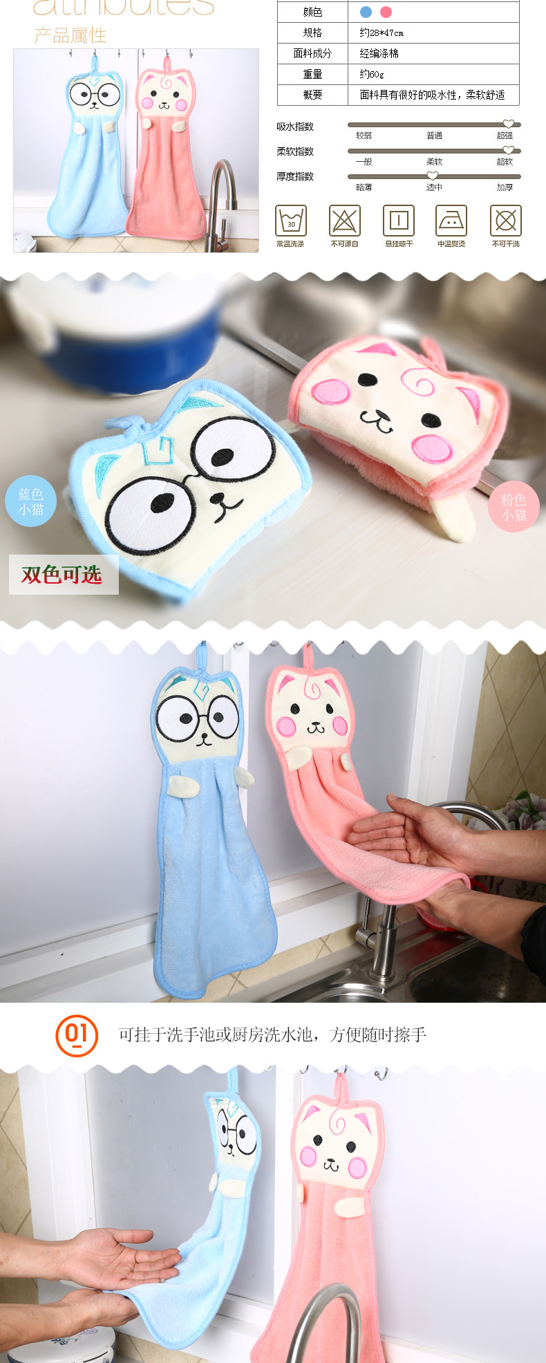 商品名称:可爱卡通加厚挂式擦手巾--粉猫 精美创意礼品