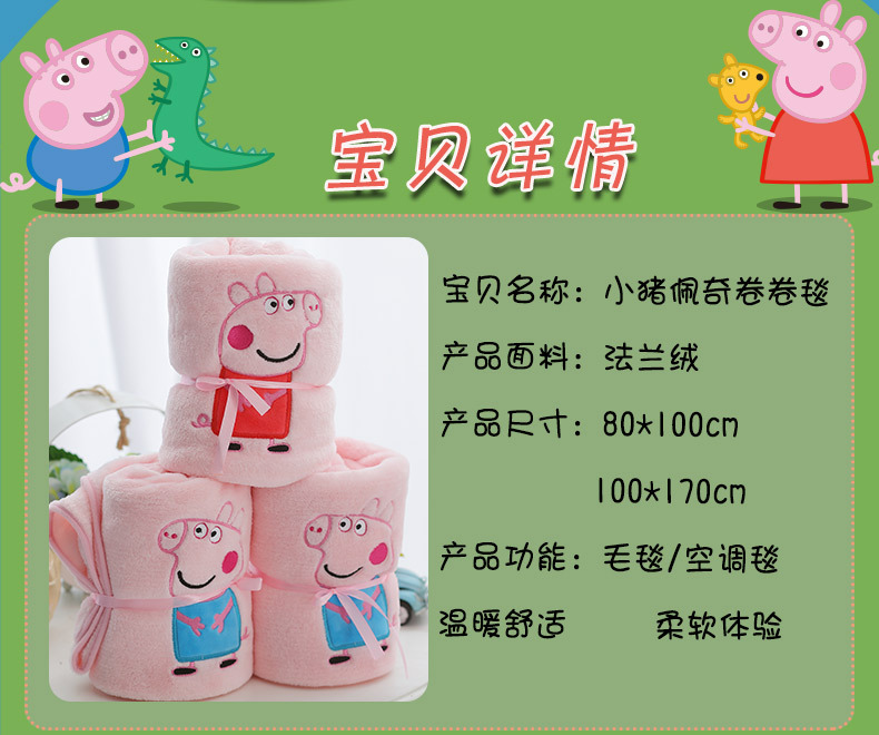 商品名称:【小猪佩奇】法兰绒卷卷毛毯 手感舒适不掉毛 精美包边设计