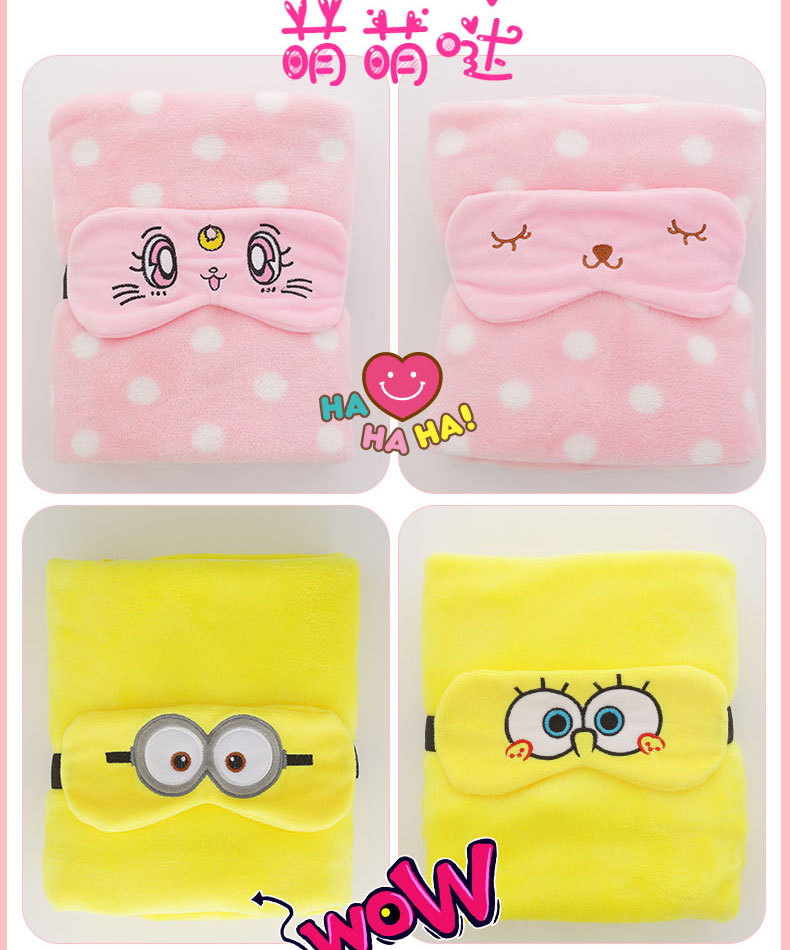【小青蛙】小毛毯+眼罩组合套装 午休毯空调毯两用毛毯保暖 店铺活动礼品