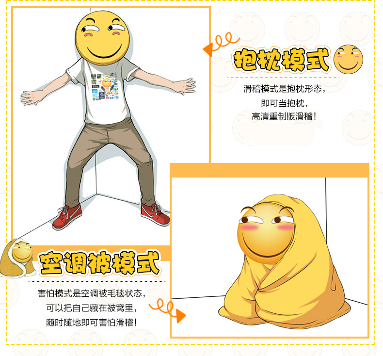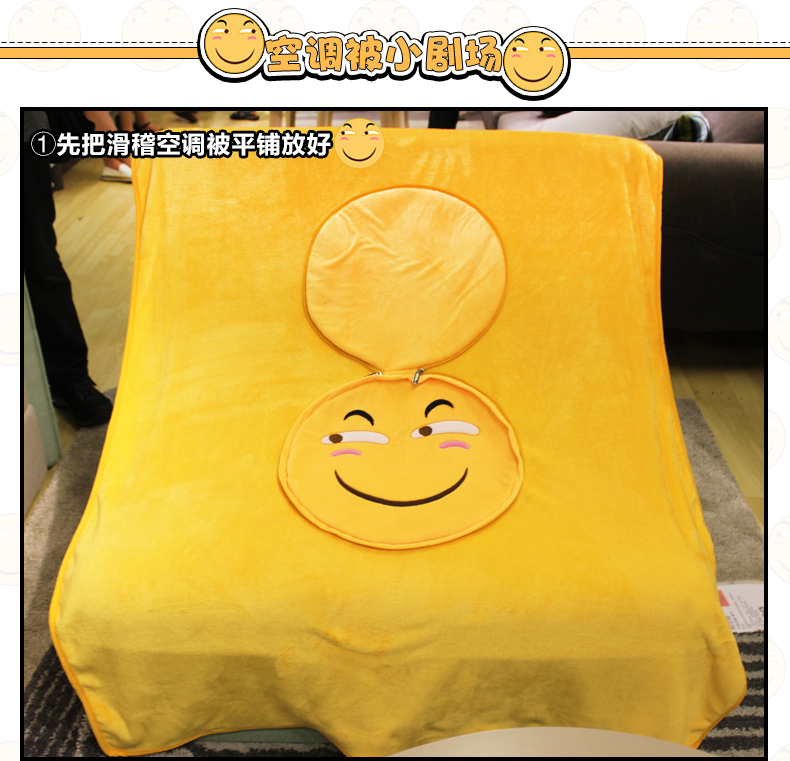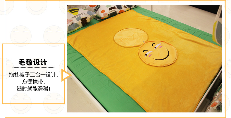 商品名称:【emoji】滑稽恶搞表情抱枕被 多用途法莱绒空调被 办公室午休毯 公司福利