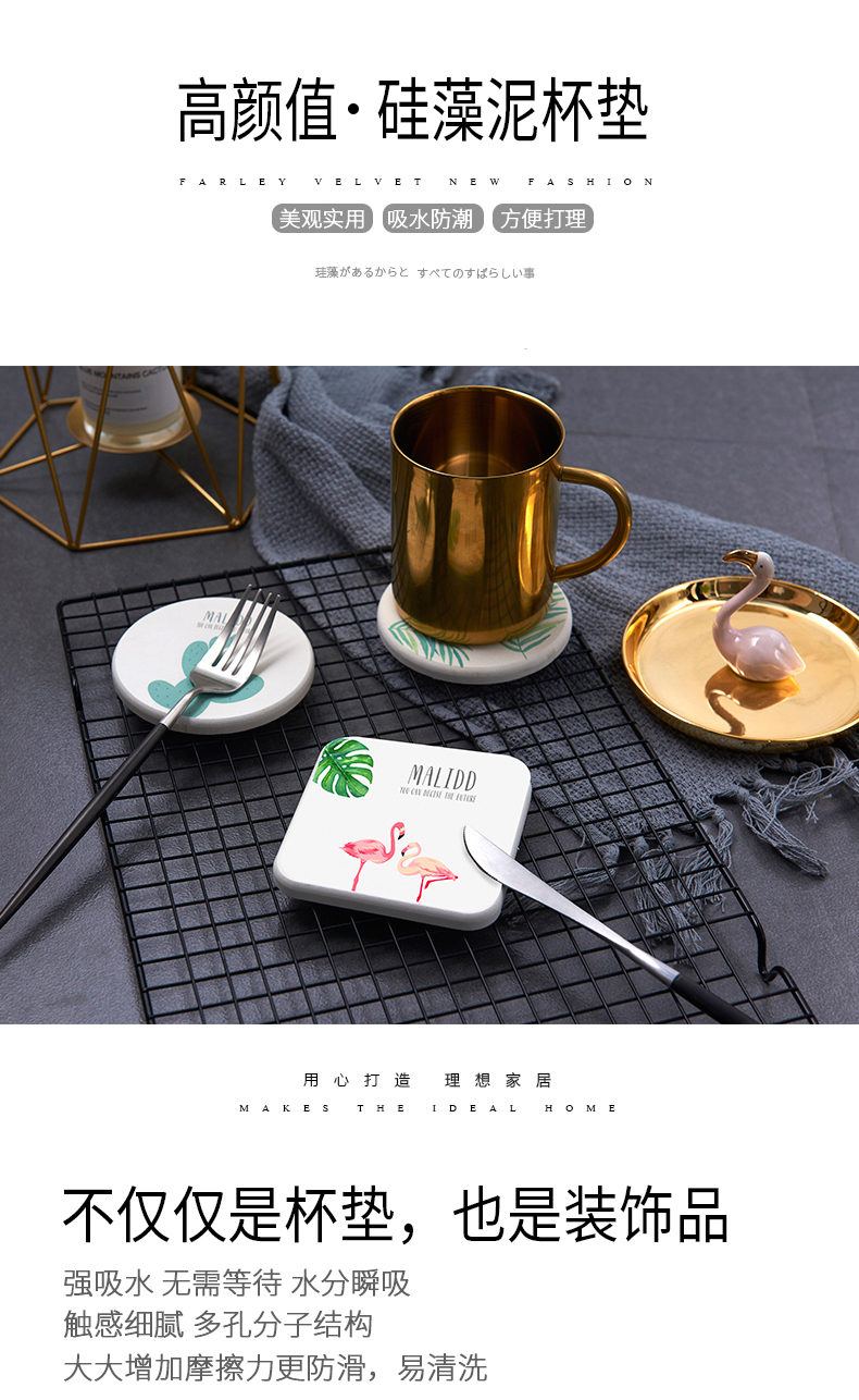 商品名称:圆形吸水防滑速干硅藻泥杯垫 洗漱垫--叶子 营销活动小礼品