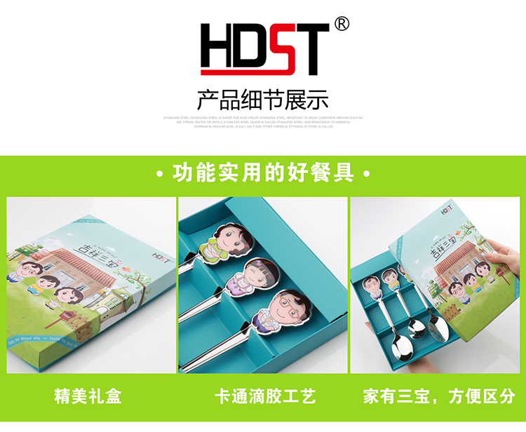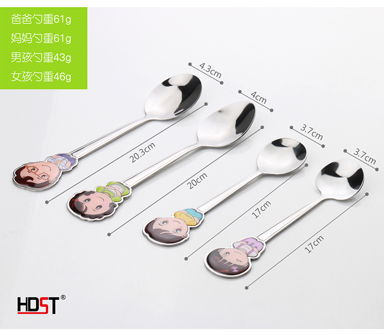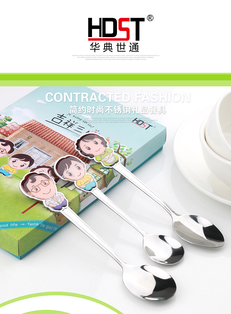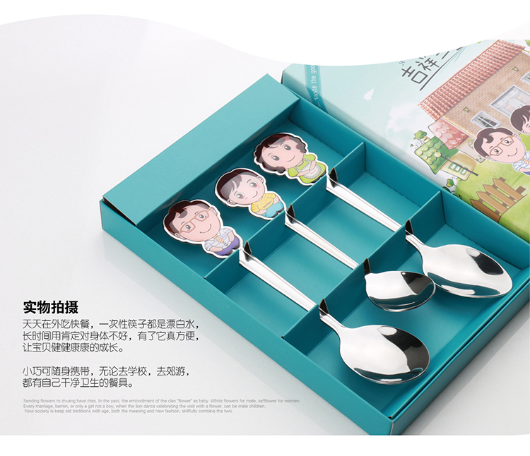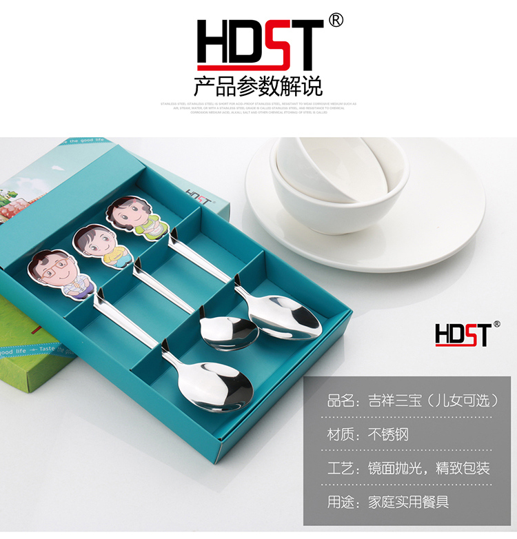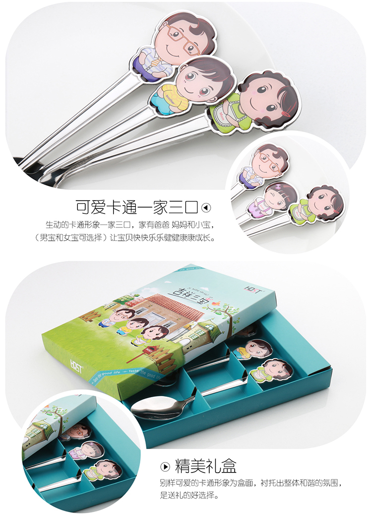 商品名称:吉祥三宝不锈钢餐具套装 可爱一家人勺子套装(勺子*3)