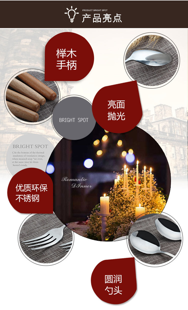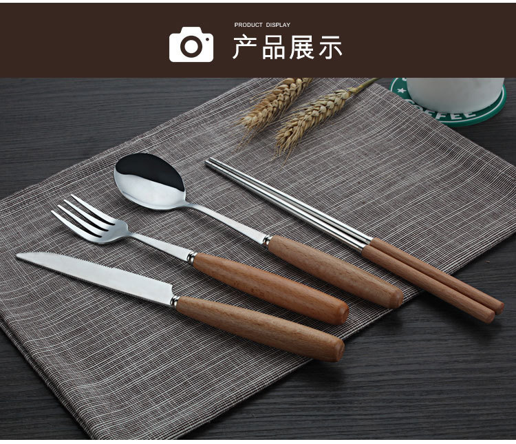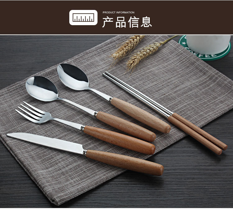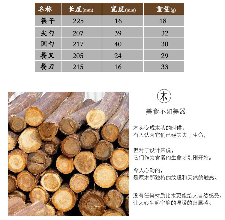 商品名称:原木不锈钢西餐具套装 榉木柄勺子、筷子两件套(圆勺)