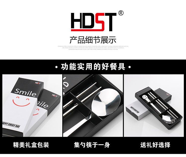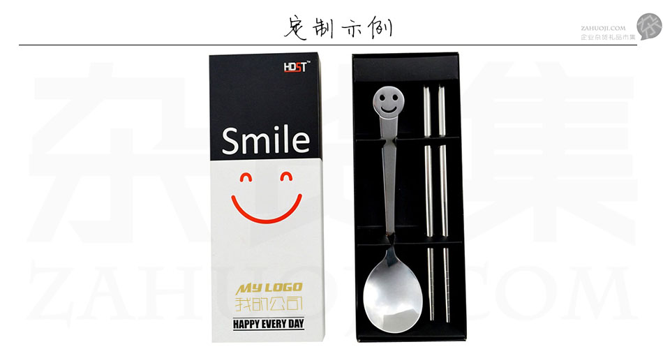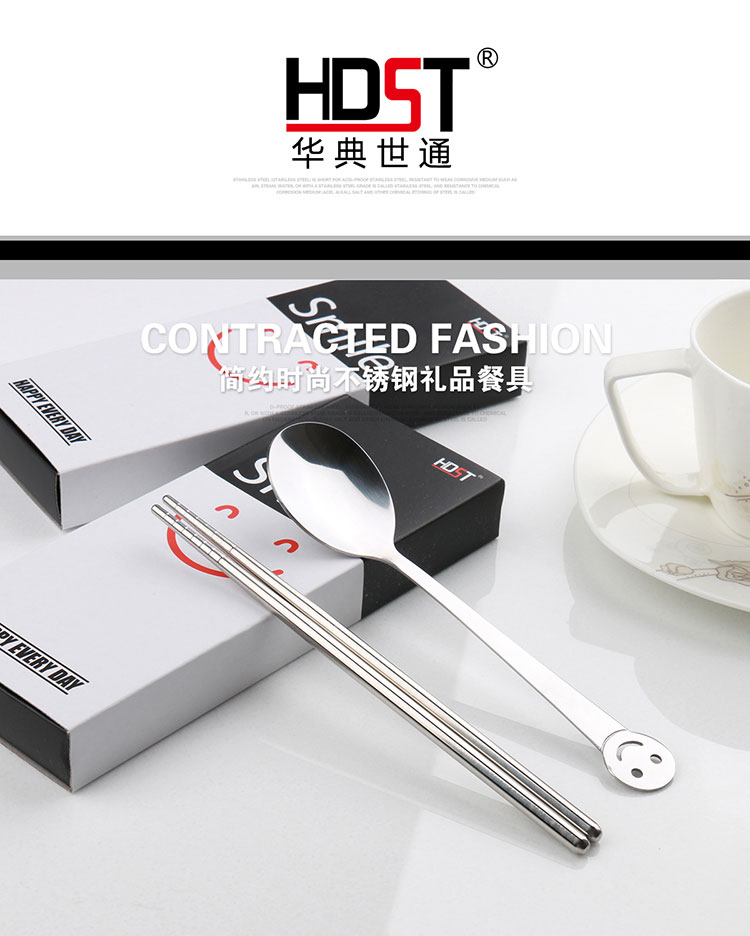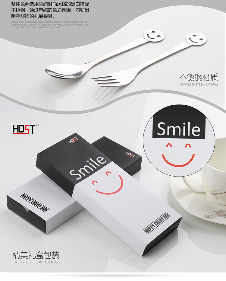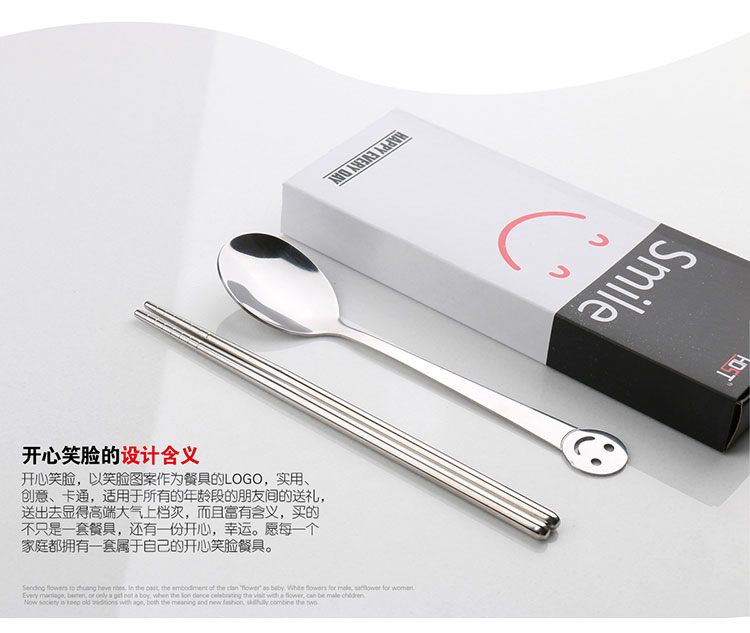 商品名称:创意礼品餐具 笑脸餐具两件套 不锈钢筷勺套装
