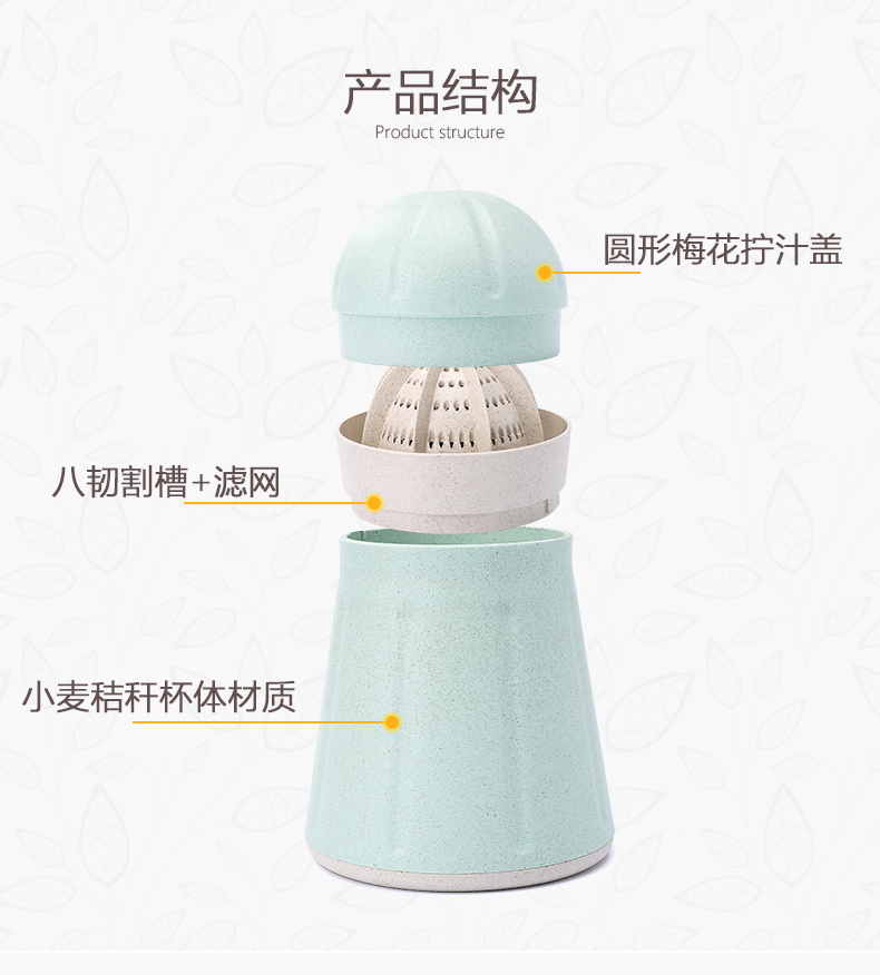商品名称:小麦秸秆便携手动榨汁杯榨汁机--绿色(813)