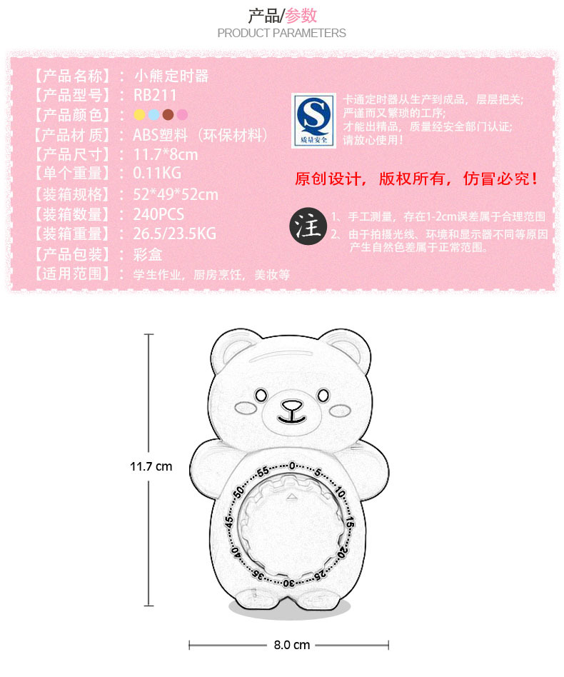 商品名称:卡通小熊定时器 厨房机械倒计时器 烹饪提醒器