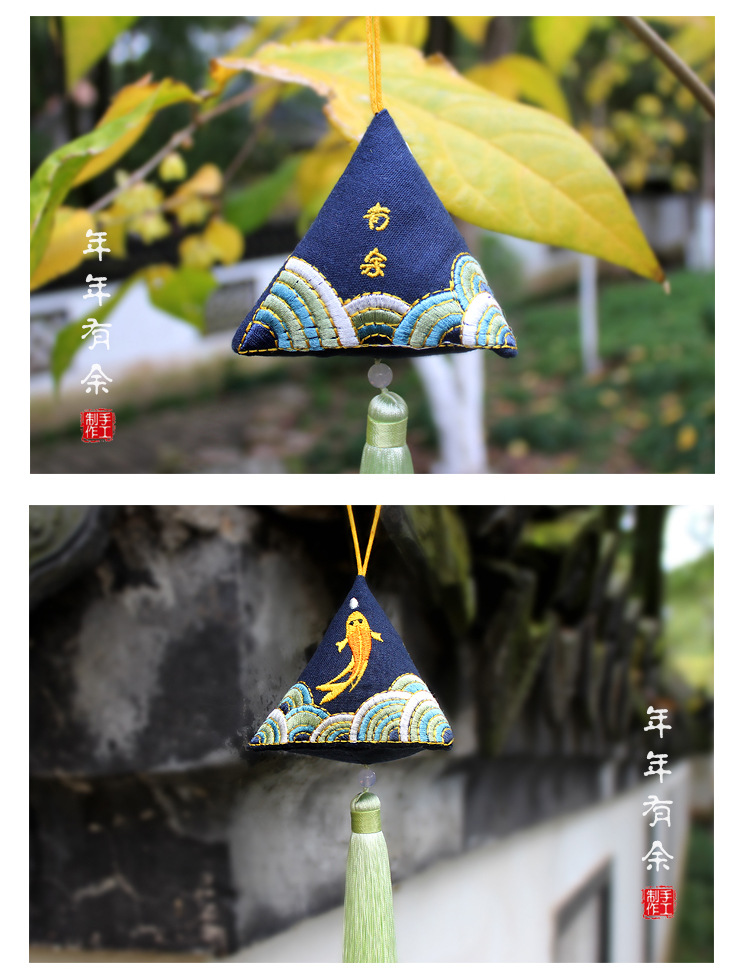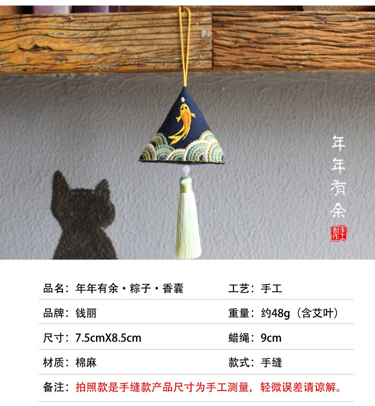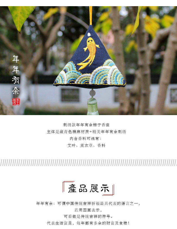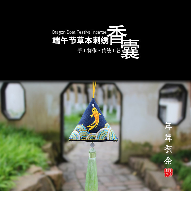商品名称:年年有余草本刺绣香囊 手工制作艾叶薰衣草香囊 创意伴手小礼品