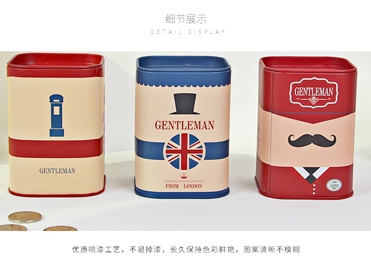 商品名称:欧美英伦风储蓄罐 马口铁储钱罐 文具笔筒 展销会礼品