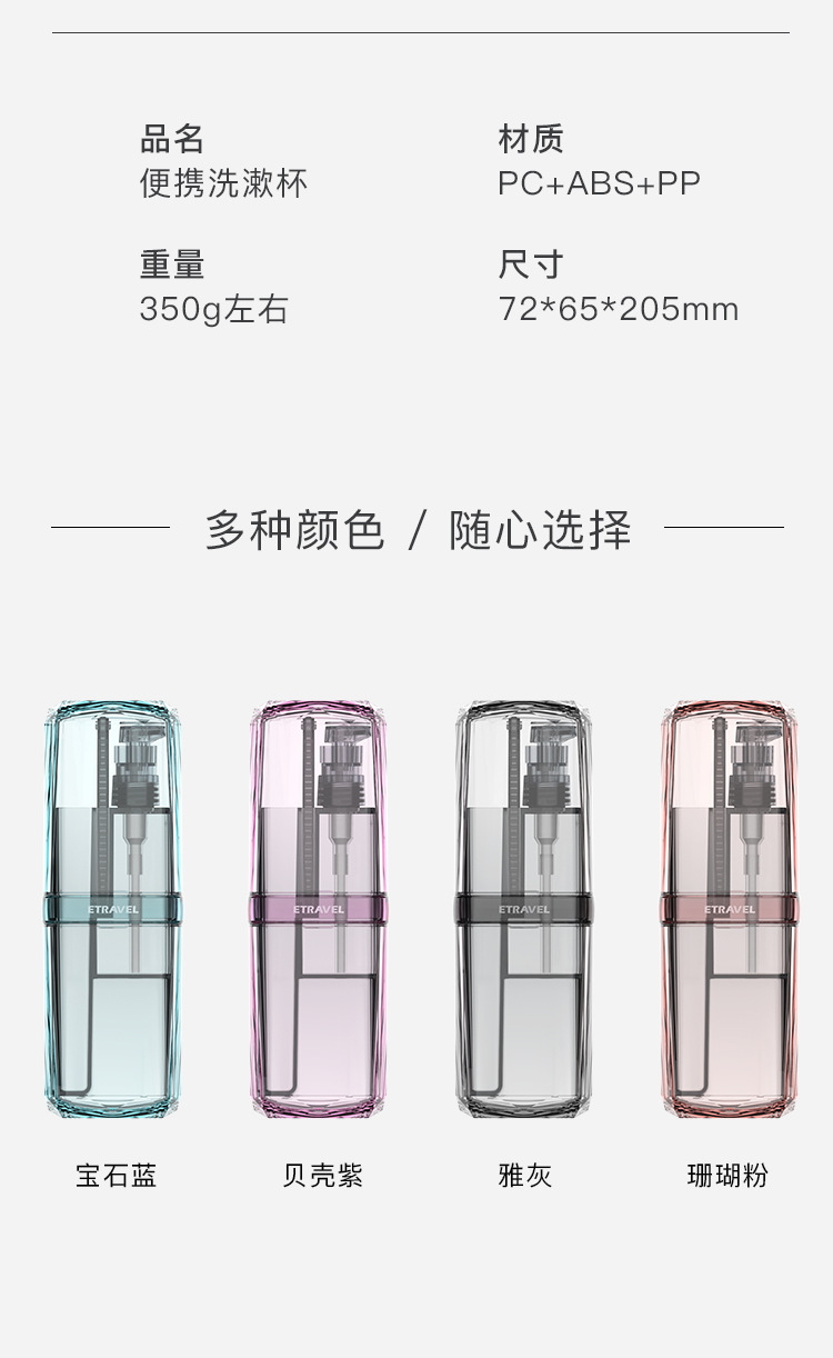 商品名称:出差旅行洗漱杯分区收纳干净整洁 体型小巧方便携带 适合出差人员的礼品
