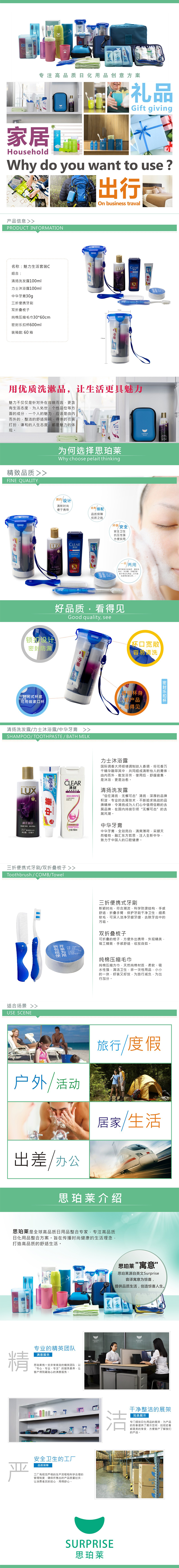 商品名称:SURPRISE 魅力生活套装C 差旅必备洗发露沐浴露牙膏牙刷旅行套装