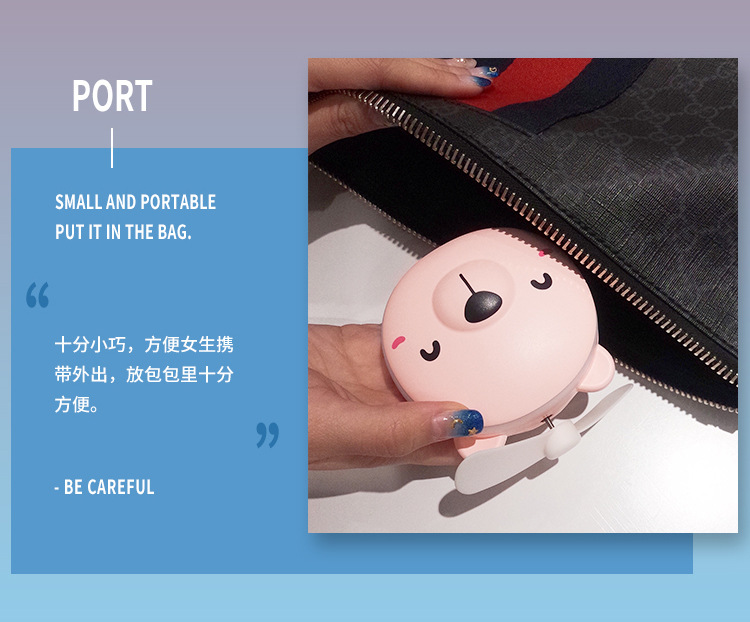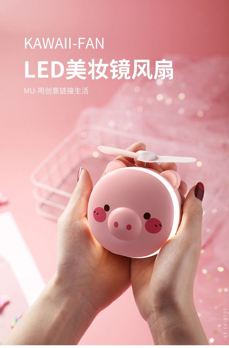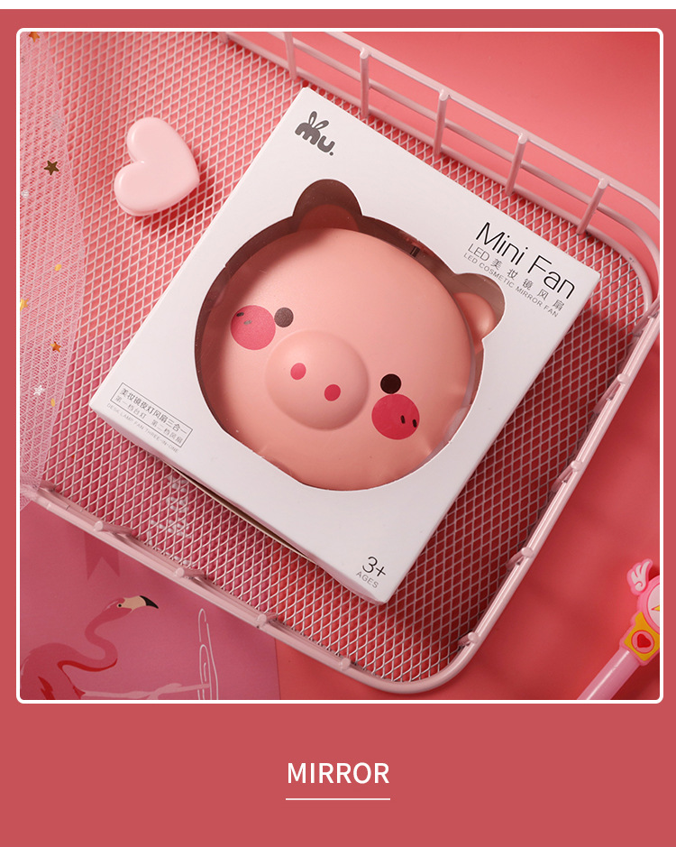商品名称:【小熊款】迷你化妆镜小风扇两用 LED灯美妆化妆镜 柔软风叶不伤手