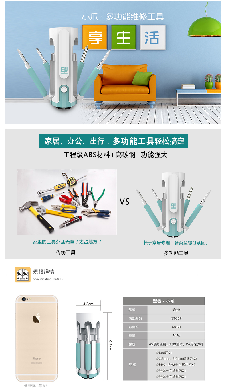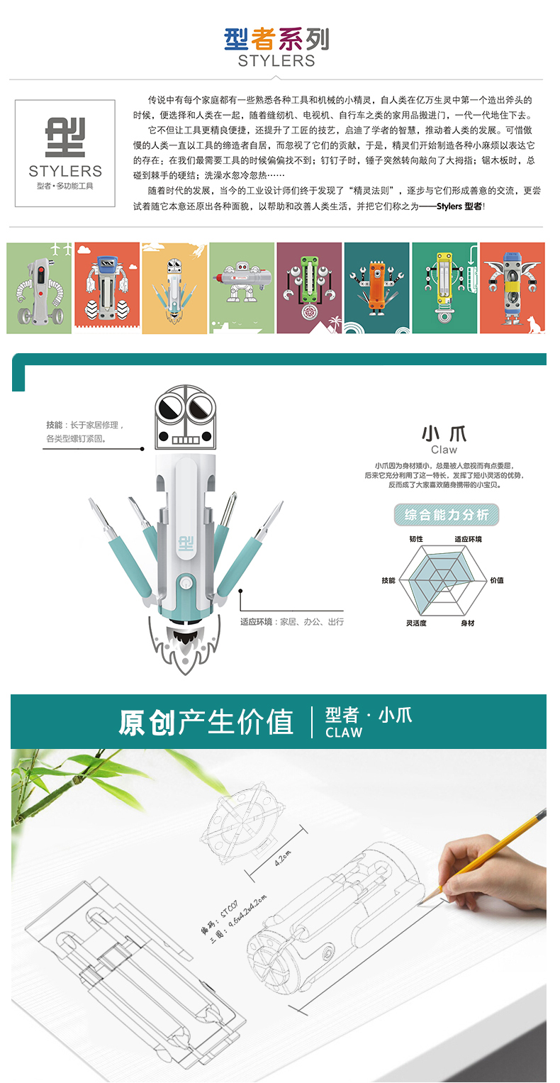 商品名称:【Claw】型者·小爪 多功能螺丝批 创意8合1多功能工具套装