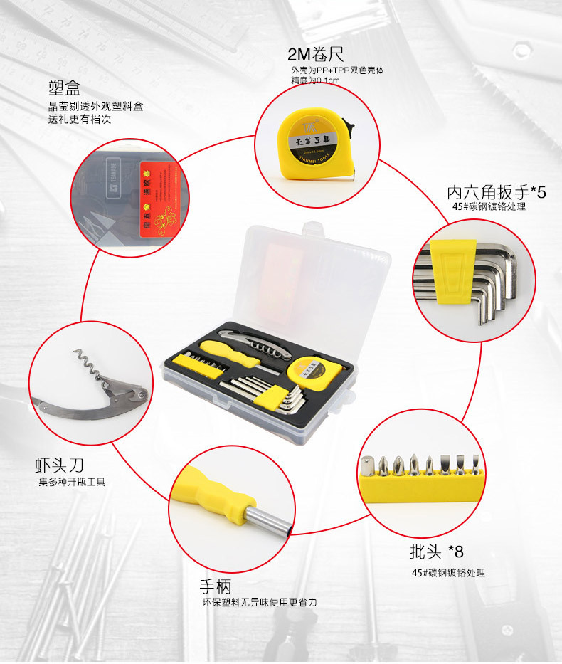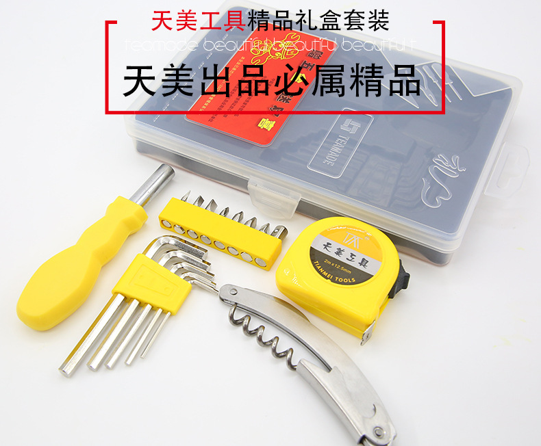 17合1五金工具组合套装 优质透明盒实用工具17件套 农村家庭礼品派发